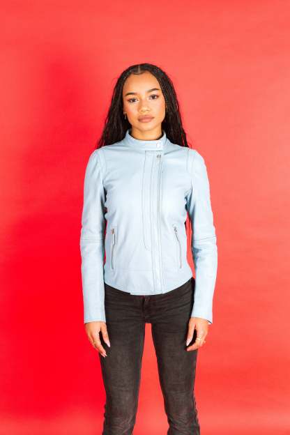 1970s Gucci Baby Blue Asymmetrical Leather Jacket SC: 5782
