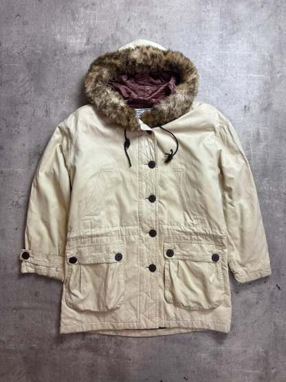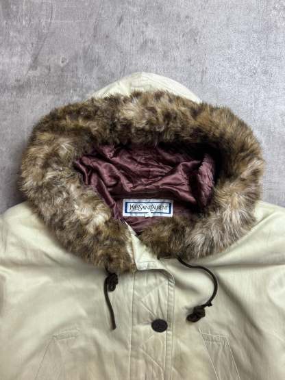 1980's YSL Fur Trim Quilted Cream Arctic Parka Jacket