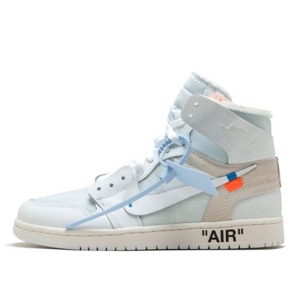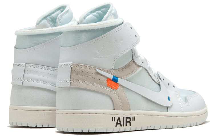 The Air Jordan 1 NRG is a reimagination of the classic Air Jordan 1. Designed by Virgil Abloh, it features a premium white leather and mesh upper with deconstructed Swoosh branding and blue detailing. The Wings logos on the ankles add a touch of nostalgia, while the black “AIR” lettering on the midsole and the orange tabs complete the look.