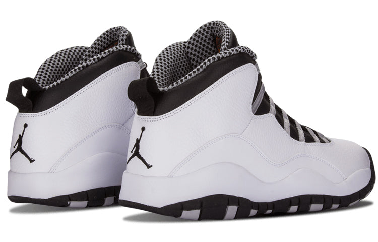 The Air Jordan 10 Retro 'Steel' 2013 is a retro release of the original 1994 colorway. This design combines a white tumbled leather upper with black and light Steel Grey accents. The sneaker also comes with a white midsole and a striped black and light steel grey outsole that features a timeline of Michael Jordan's career achievements - making it a must-have for any fan of His Airness. The shoe was also retroed in 2005, so it's truly a classic design that has withstood the test of time. If you're looking for a great addition to your Jordan collection - or simply want a comfortable, stylish sneaker to rock on the court - then this is the perfect choice.