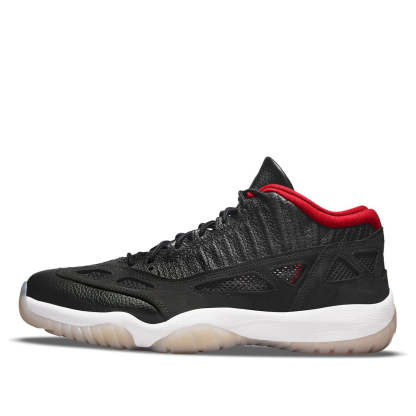 The Air Jordan 11 Retro Low IE ‘Bred’ is a classic shoe from the Nike archives. It was originally released in 1996 and has been remastered for 2021. The black upper is made of leather, nubuck, and breathable mesh, and is embroidered with a Jumpman logo in crimson. The tooling is unchanged from the original edition, including a translucent rubber outsole and carbon fiber shank.