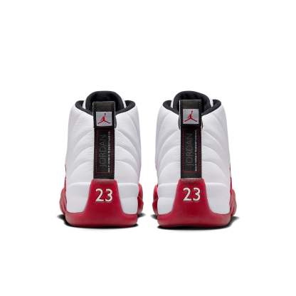 Relive the legacy of the Air Jordan 12 Retro 'Cherry' with its 2023 comeback. This iconic silhouette, originally released in 1997, features a bold red leather upper, pebbled mudguards, and shiny silver hardware. The classic Jumpman branding and diamond-shaped eyelets add a touch of timeless appeal. Step into history and elevate your style with this legendary sneaker.