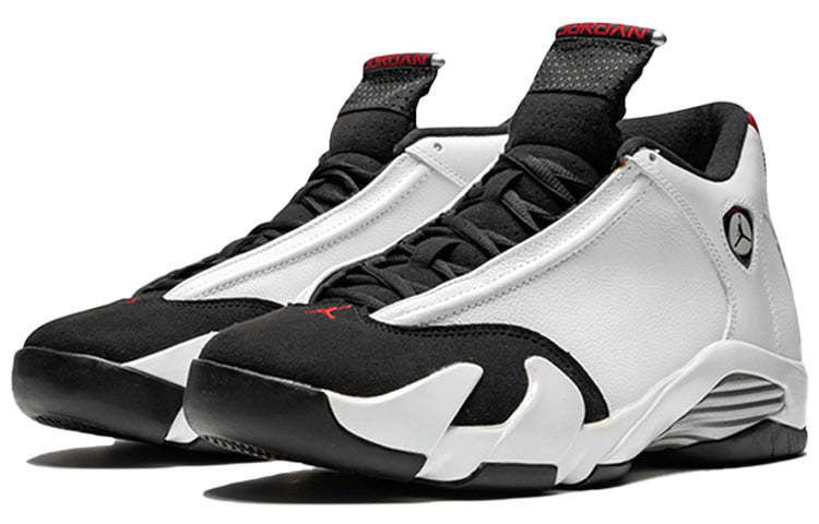 The Air Jordan 14 Retro 'Black Toe' made its debut in 1998, and was released alongside other Air Jordan 14 models in 2014. The 'Black Toe' was retroed in 2006, but this 2014 release is in its true form without the ribbed panels as seen in the 2006 version. This model is constructed with a white leather upper, black toe box and midsole, and red outsole. TheJumpman is embroidered on the tongue while the ‘23’ is stitched on the heel counter.