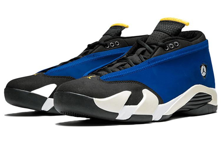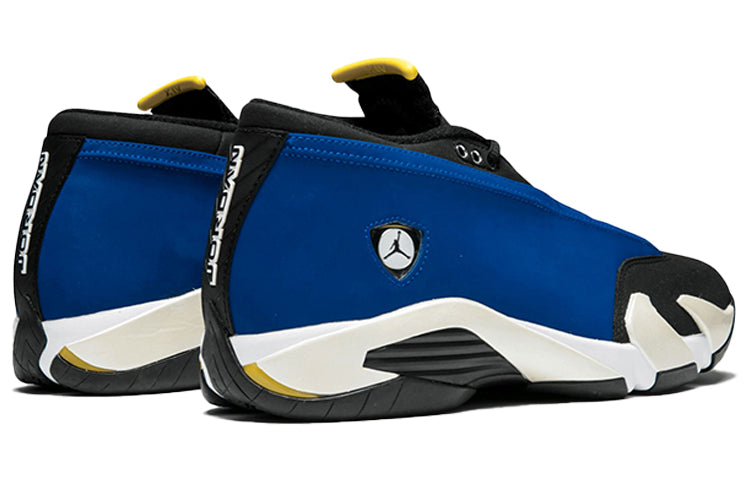 The Air Jordan 14 Retro Low 'Laney' sneakers are a must-have for any true fan of the greatest player of all time, Michael Jordan. Named after MJ's high school alma mater, these shoes are a retro release of the original 1999 design. They feature a black nubuck leather upper with varsity royal accents and hits of varsity maize on the Jumpman and tongue. These shoes are not only stylish but also comfortable, making them perfect for wearing on and off the court. Whether you're shooting some hoops with friends or just hanging out, the Air Jordan 14 Retro Low 'Laney' sneakers are a great choice. So don't wait any longer, add these to your collection today.