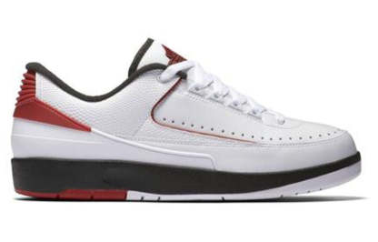 The Air Jordan 2 Retro Low 'Chicago' first released in 1987 and made a comeback in 2016. The low-top design is based off the original Air Jordan 2, with a few modern updates. The white leather upper is accented with a tonal lizard texture on the collar overlay. The Chicago-inspired color scheme is completed with a Jordan ‘Wings’ logo on the tongue and Nike branding on the sockliner. If you're looking for a classic sneaker with a little bit of flair, the Air Jordan 2 Retro Low is the perfect choice.