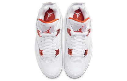 If you're looking for something simplistic yet timeless, look no further as the Nike Air Jordan 4 Retro Metallic Pack has got you covered. Dressed in all white, the upper is constructed with leather and grid mesh. Underneath is a white rubber sole. Touches of Total Orange grace the eyelets, heel, tongue and sole.