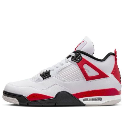 The Jordan 4 Retro Red Cement, released on September 9, 2023, is a bold twist on a classic. Featuring white premium leather uppers with fire red and black accents, this shoe stays true to the iconic Jordan 4 silhouette. The iconic mesh detailing and Jumpman logo remain in their traditional placements, while the black, white, and fire red midsole adds a modern touch. This statement piece is a must-have for any Jordan enthusiast.