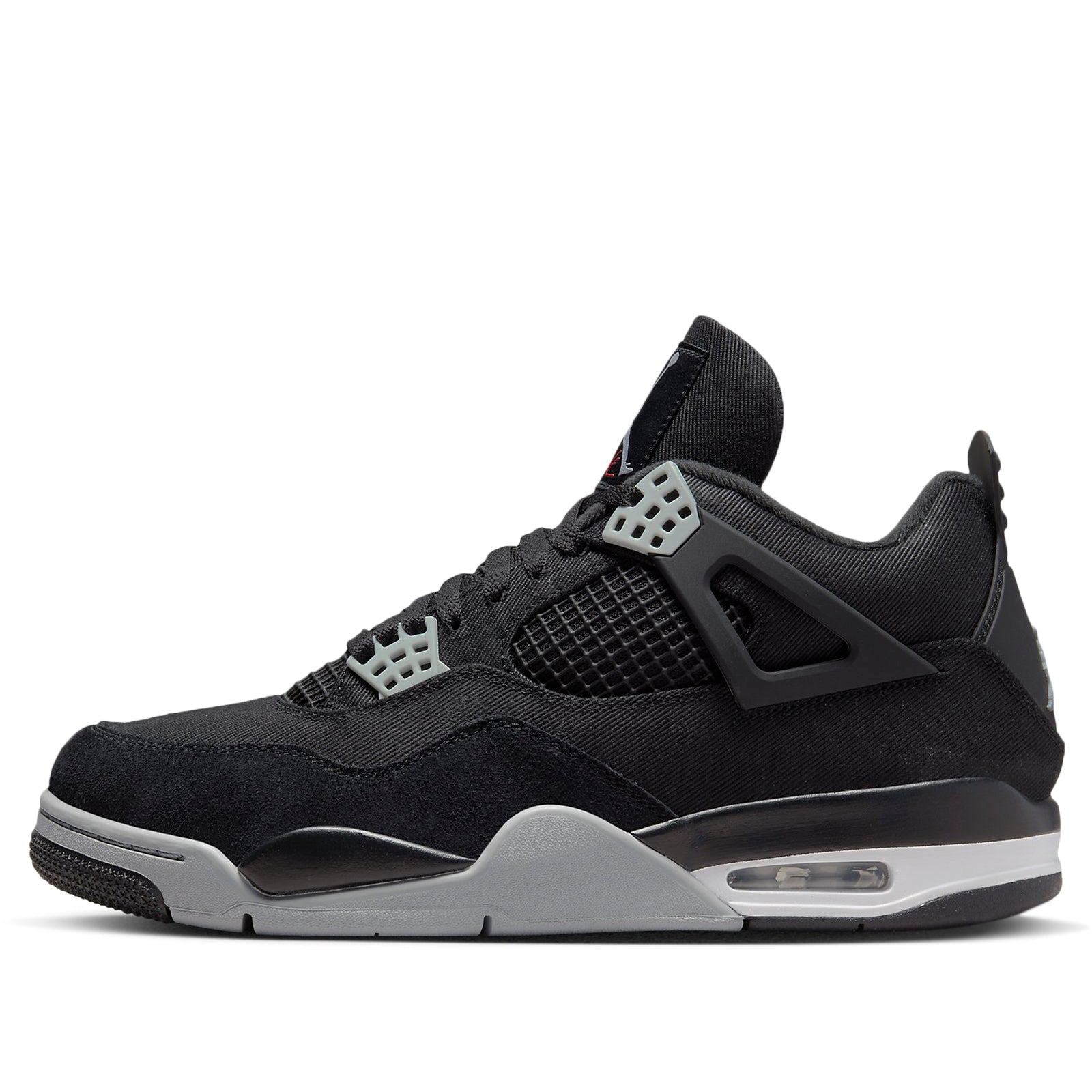 The Air Jordan 4 Retro SE Black Canvas is here to provide a classic twist to your sneaker collection. Featuring a black canvas upper, this sophisticated mid-top sneaker elevates any style instantly with its showstopping design. Accents of gray tonal suede cover the eyelets and forefoot overlays, creating an eye-catching contrast and adding textural interest to the silhouette. The Jumpman logo graces the heel while a crimson Flight logo highlights the woven tongue tag. To complete the look, a two-tone polyurethane midsole with visible Air cushioning in the heel offers maximum durability and comfort for all day wearability. Get ready for heads turning your way each time you wear Out Jordan 4 Retro SE Black Canvas sneakers!