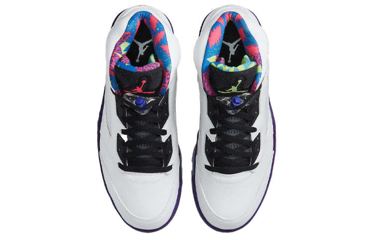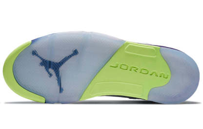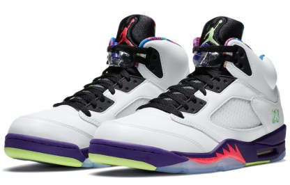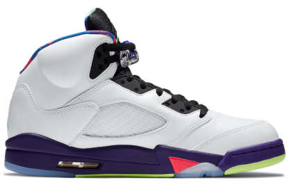 The Nike Air Jordan 5 Retro GS “Alternate Bel-Air” features an all-white leather upper. The mesh panel also takes a lighter shade, while the tongue and eyestay area still retains the all-black design. The two Jumpman logos on the tongue are in mismatched Racer Pink and Ghost Green. The same hues can be spotted along the sockliner, and the dual-tone motif is extended to the branding and “23” lettering below.