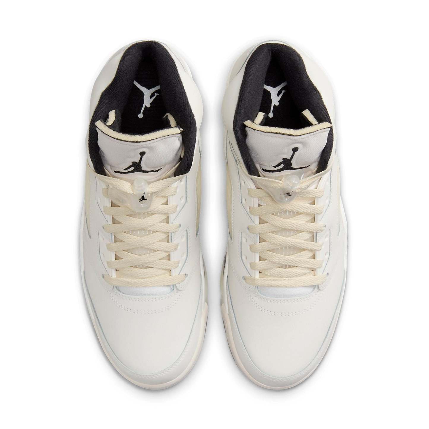 The Air Jordan 5 'Sail', exudes elegance and style. Although official images are yet to surface, this sneaker boasts a sophisticated color palette, combining sail, black, light orewood brown, and coconut milk hues. The premium build features a sail base with coconut milk accents on the translucent netting found on the panels and tongues, as well as the outsole. Black and light orewood brown details grace the Jumpman logo, inner liner, and midsole.