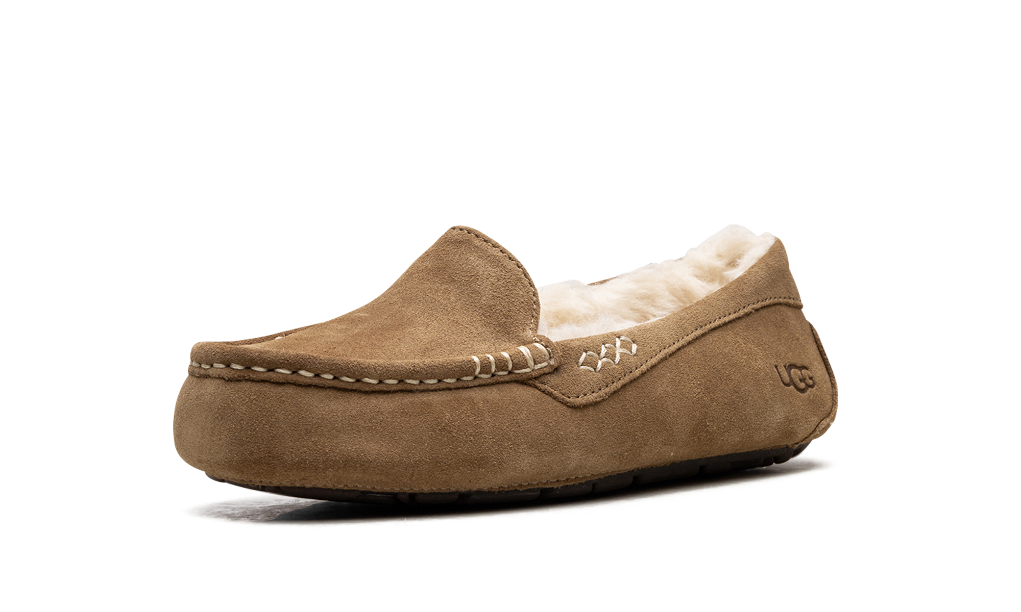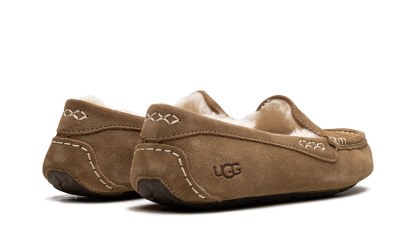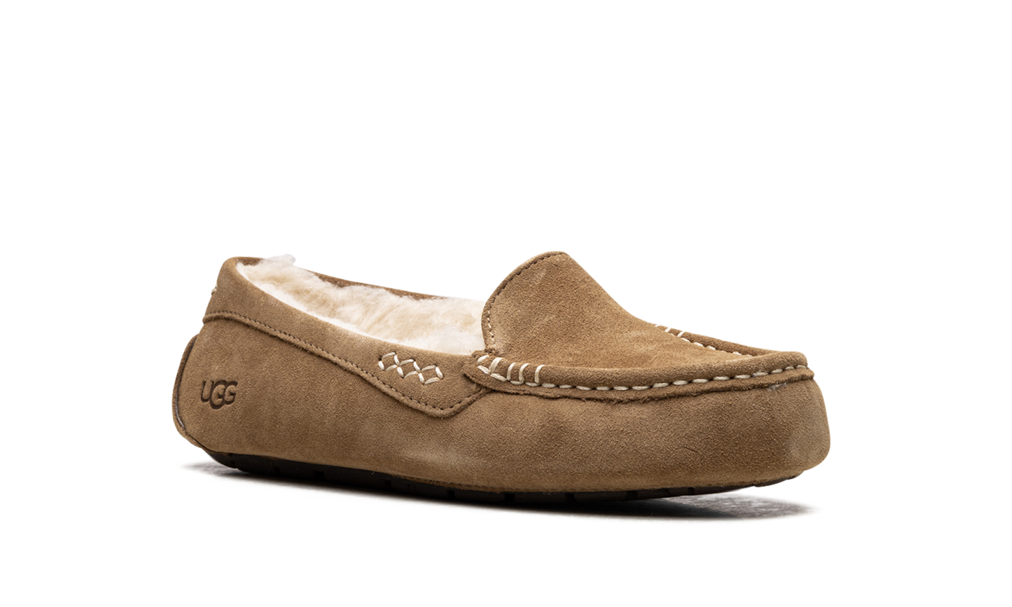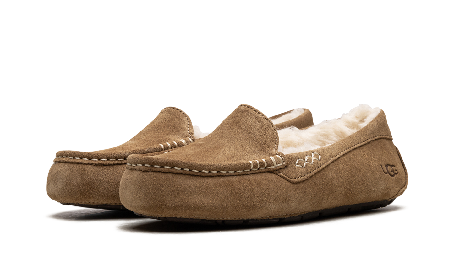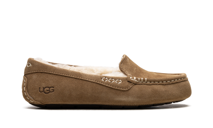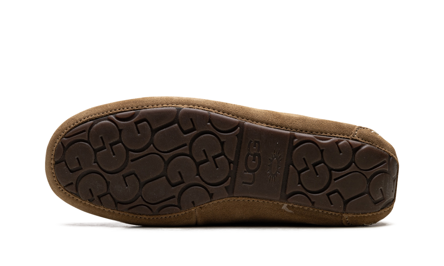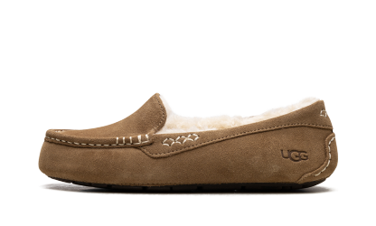 Welcome to slipper perfection with the iconic UGG Ansley Wmns "Chestnut," known as the 'Moc-Slipper Marvel!' This best-selling shoe perfectly blends the refined look of a driver moccasin with luxurious slipper comfort. It features a water-resistant suede upper with decorative stitching, encasing a cloud-like interior of plush UGGplush™ wool lining. With a durable, molded rubber outsole, this is the perfect versatile piece—stylish enough for quick errands but cozy enough that you’ll forget to take it off at home.