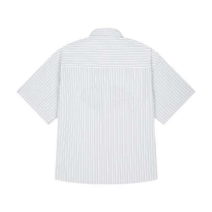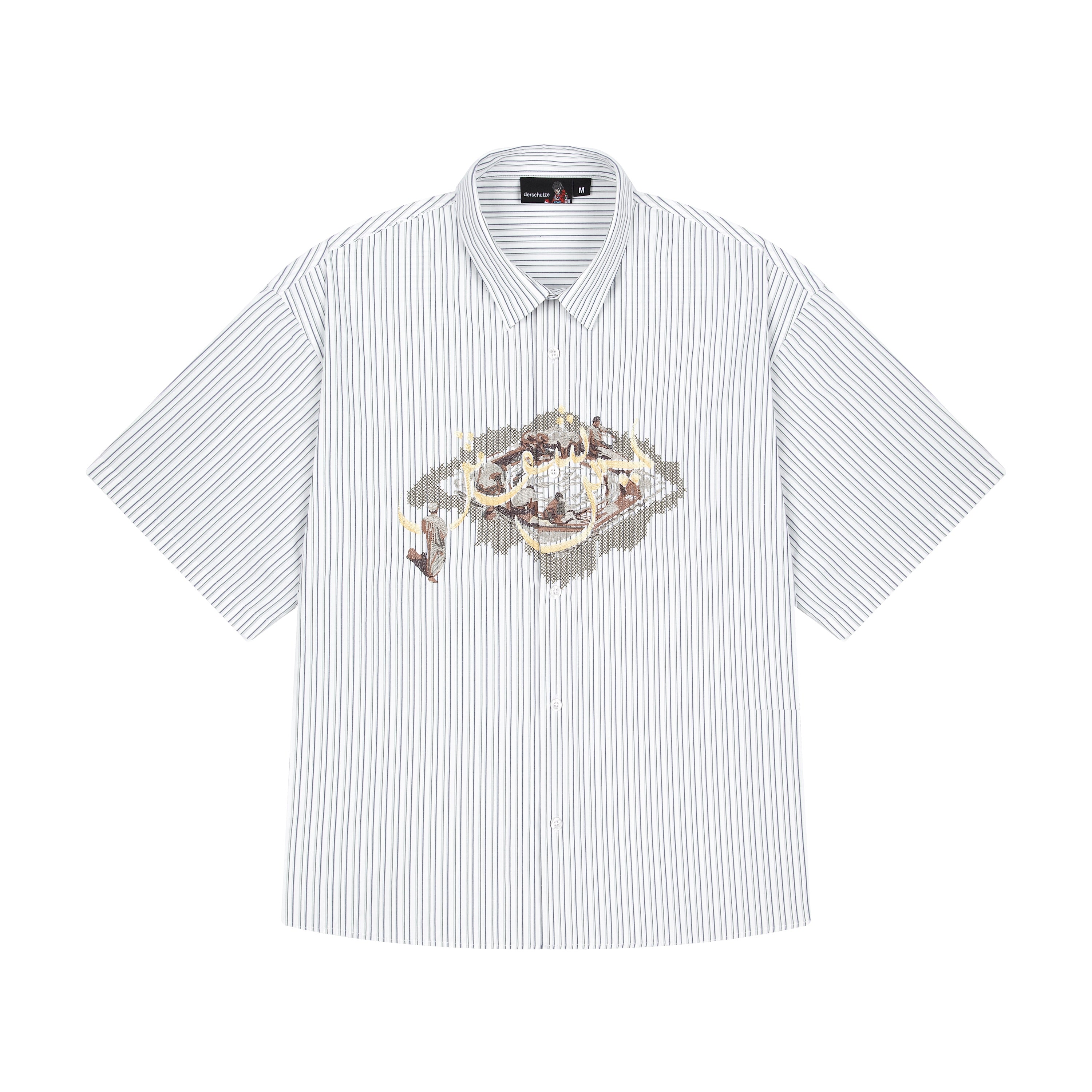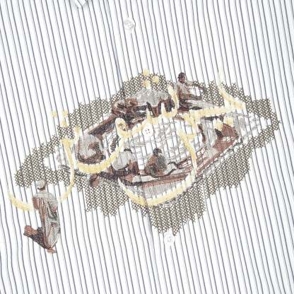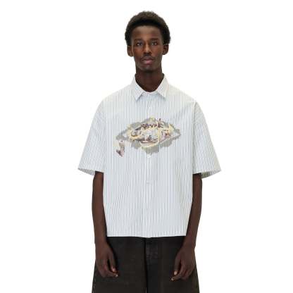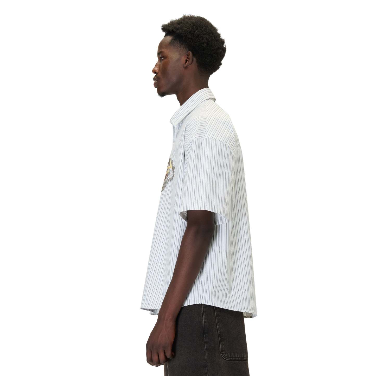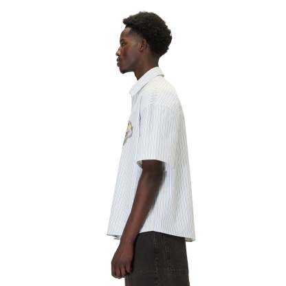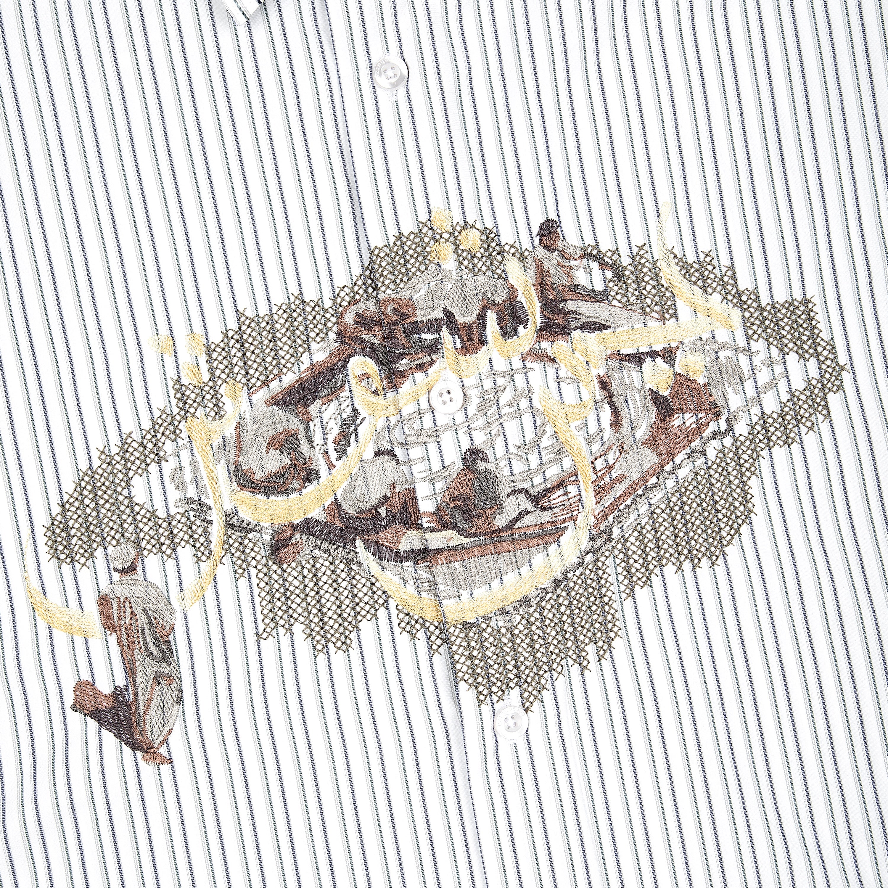 popline fabric / 57% cotton 43% polyester / embroidery on front / custom buttons / curved hem / relaxed fit / fits true to size