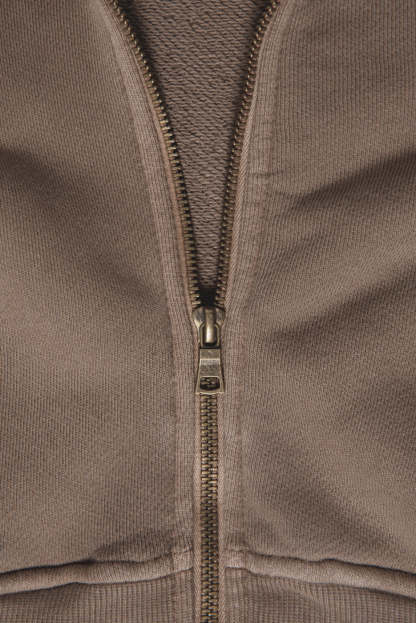 A classic zip-up with a cropped fit. Designed with front pockets and a garment wash for that broken-in feel. We removed the lining, making it lighter, easier, and perfect for year-round wear. Laid-back and effortless, just like everything we do.