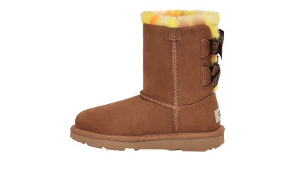 The UGG Bailey Bow Plaid Punk boot reimagines a timeless classic with a playful, rebellious edge designed for Grade School kids. Combining cozy comfort with bold, statement-making style, this boot is pre-treated and built for durability, ensuring your child stays warm, comfortable, and stylish on the go. The classic suede upper is accented by exaggerated plaid faux-fur fluff and is finished with the iconic fixed UGG® logo bows along the back shaft, infusing a "punk" inspired aesthetic into the beloved UGG silhouette.