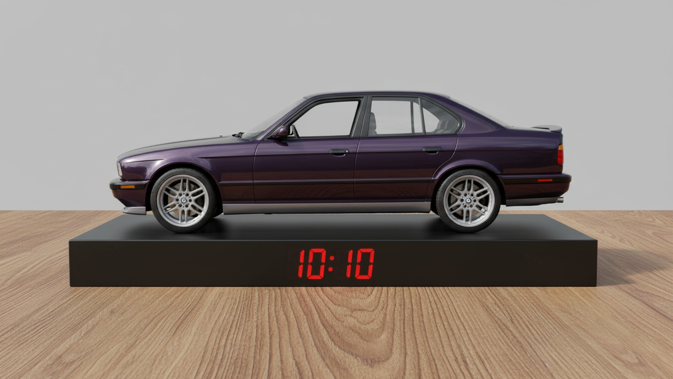 Unlike standard models, the BMW E34 is rare and difficult to source, which makes this alarm clock a true collector piece. Each unit is individually prepared and converted into an alarm clock by hand.