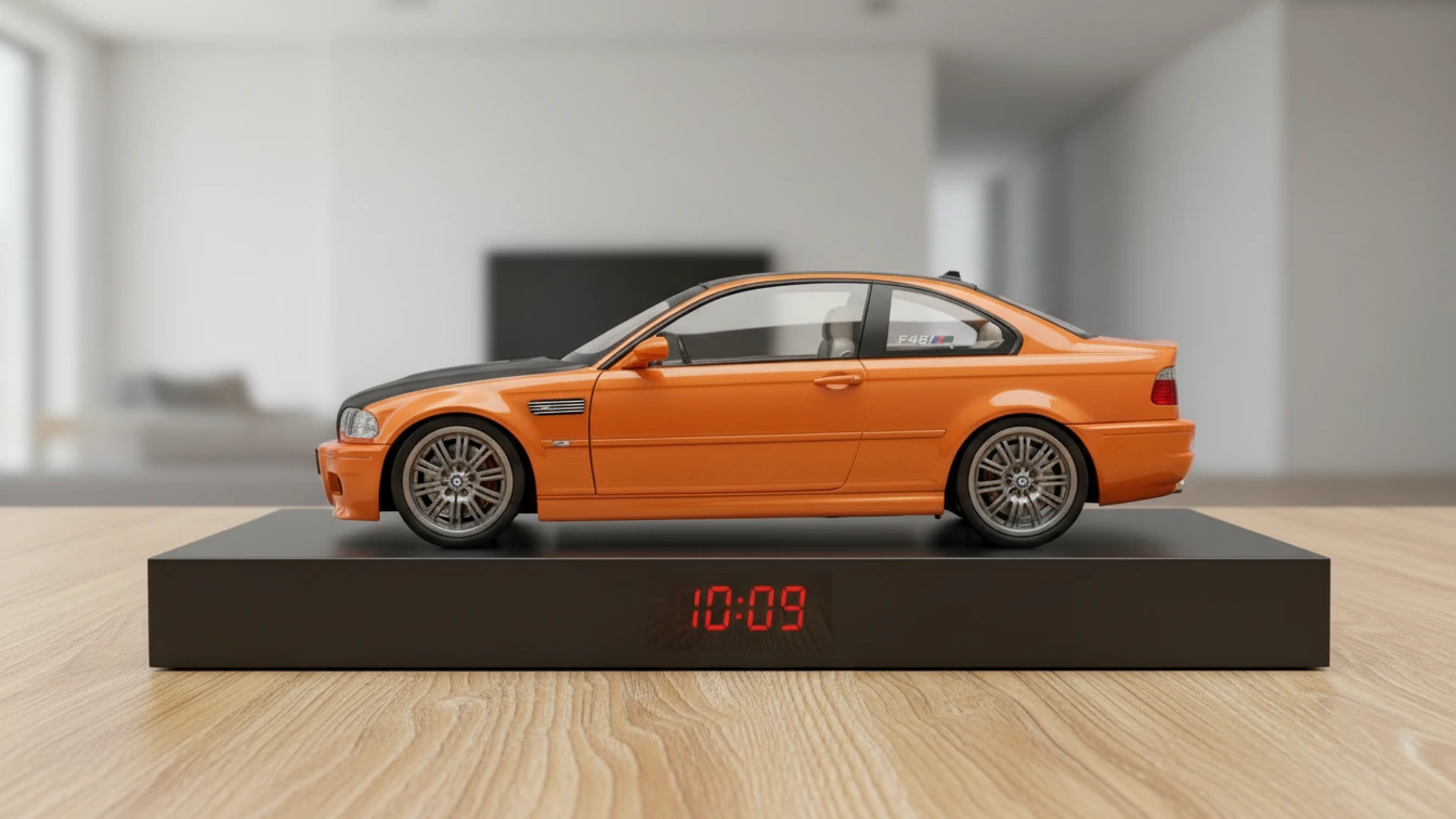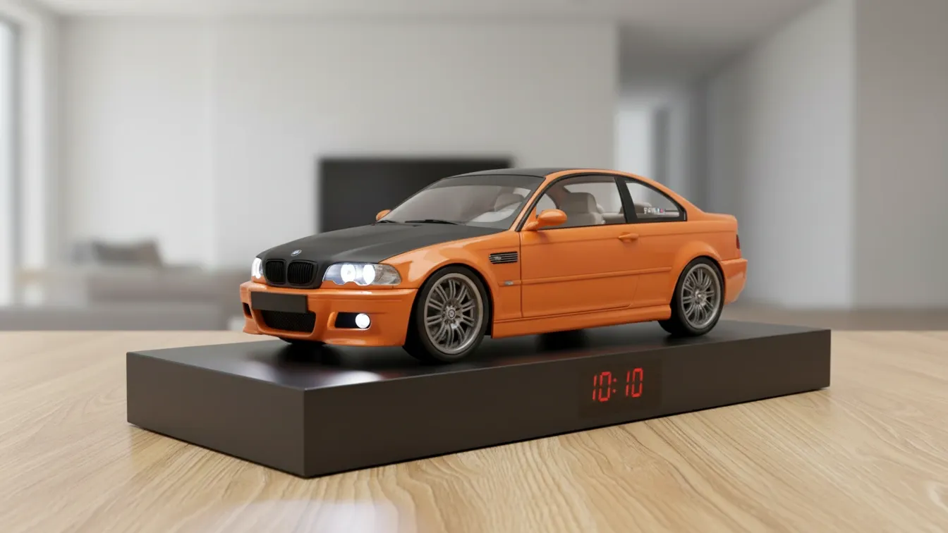 The BMW E46 M3 alarm clock is a premium handmade desk clock built using a limited edition 1:18 scale BMW E46 M3 model. Designed for collectors and true M-series enthusiasts, this piece delivers both visual impact and an immersive automotive alarm experience.