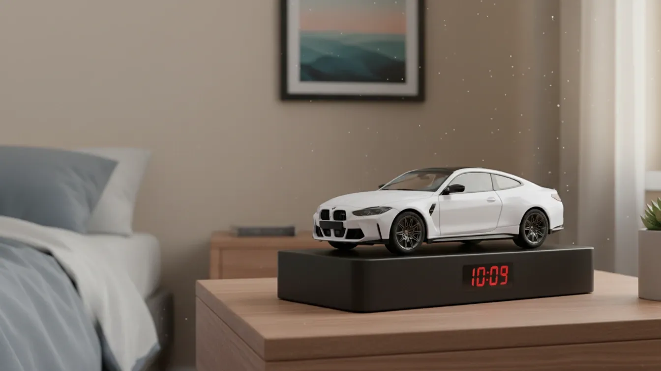 This is a ready-made BMW M4 alarm clock created using a real collectible model car,