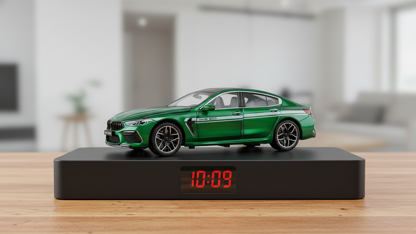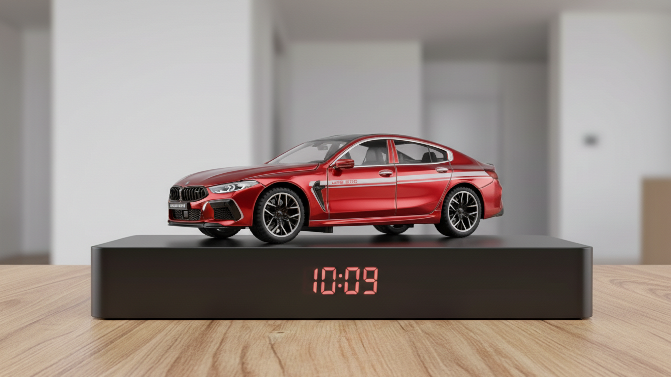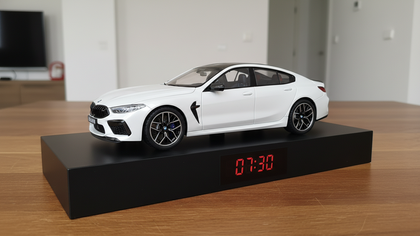 This BMW M8 alarm clock is designed for BMW enthusiasts who want a unique automotive-inspired desk clock that combines luxury styling with practical functionality.
