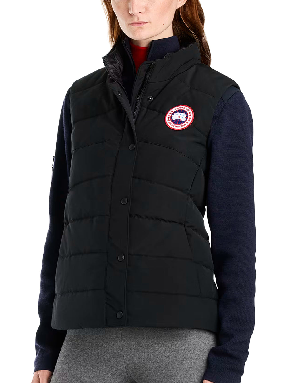 The Canada Goose Freestyle Vest Black blends style and practicality, perfect for and alike. Featuring a hidden snap closure over a two-way front zipper, a fleece-lined chin guard, two external zippered hand pockets, and an internal mesh pocket. A versatile , ideal for layering and daily wear. Elevate your wardrobe with this premium essential.