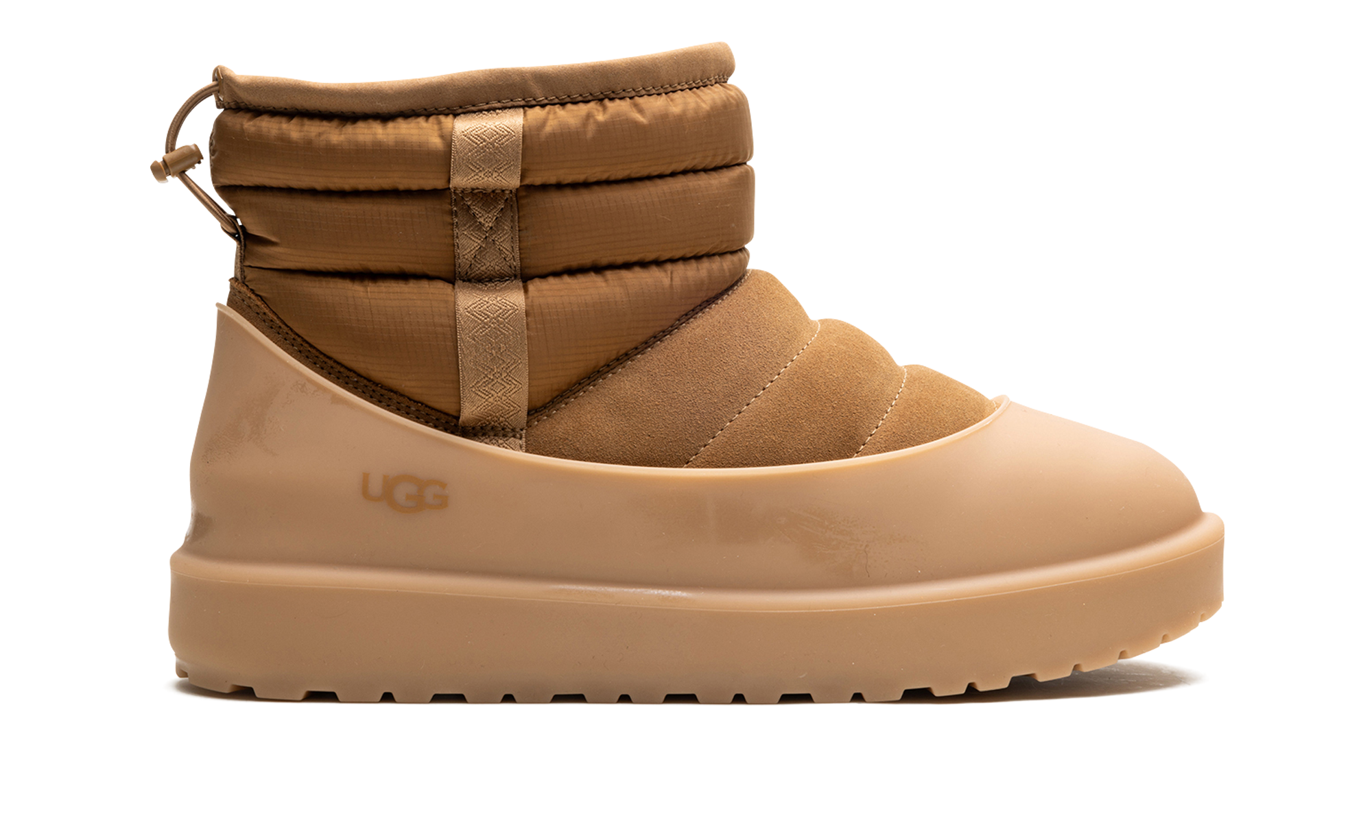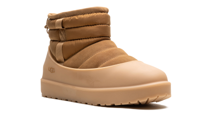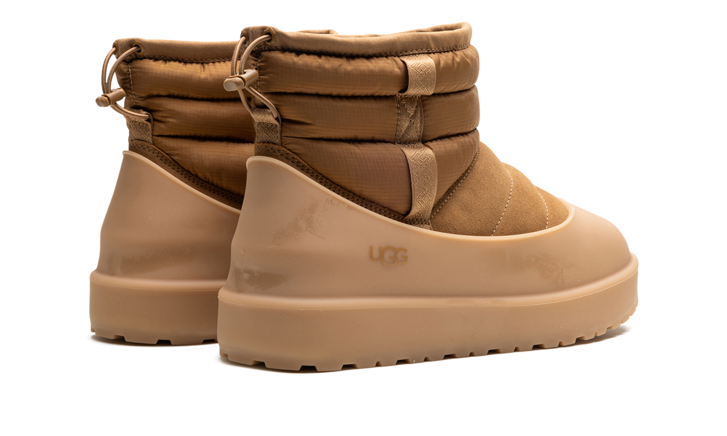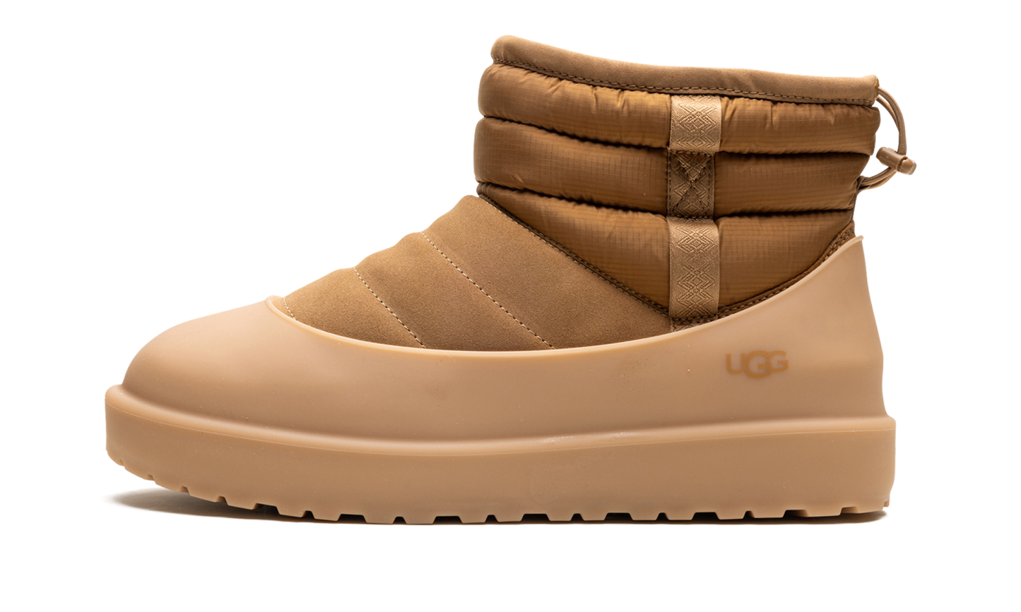 Endure the elements in style with the UGG Classic Mini Pull-On Weather Boot "Chestnut", the reliable Winter Warrior. This boot features seam-sealed, waterproof suede and a plush UGGplush™ wool-blend lining, engineered to keep you warm in temperatures as low as -20˚C. The pull-on design is secured with a drawcord toggle and enhanced with 3M™ Featherless insulation. With a lightweight Treadlite by UGG™ outsole, this boot delivers signature comfort and weatherproof traction for any chilly adventure.