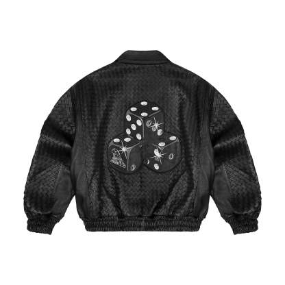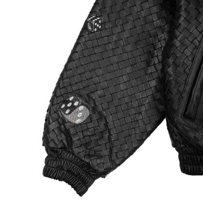 genuine woven leather / embroidered on sleeve / leather appliqué embroideries on front and back / with YKK zipper / fits true to size
