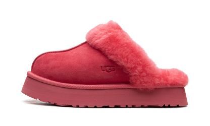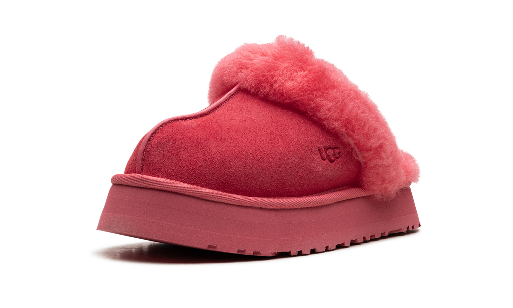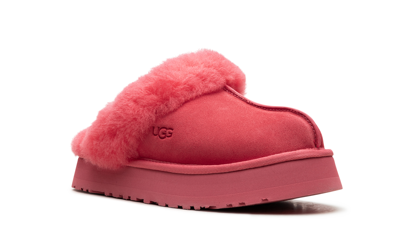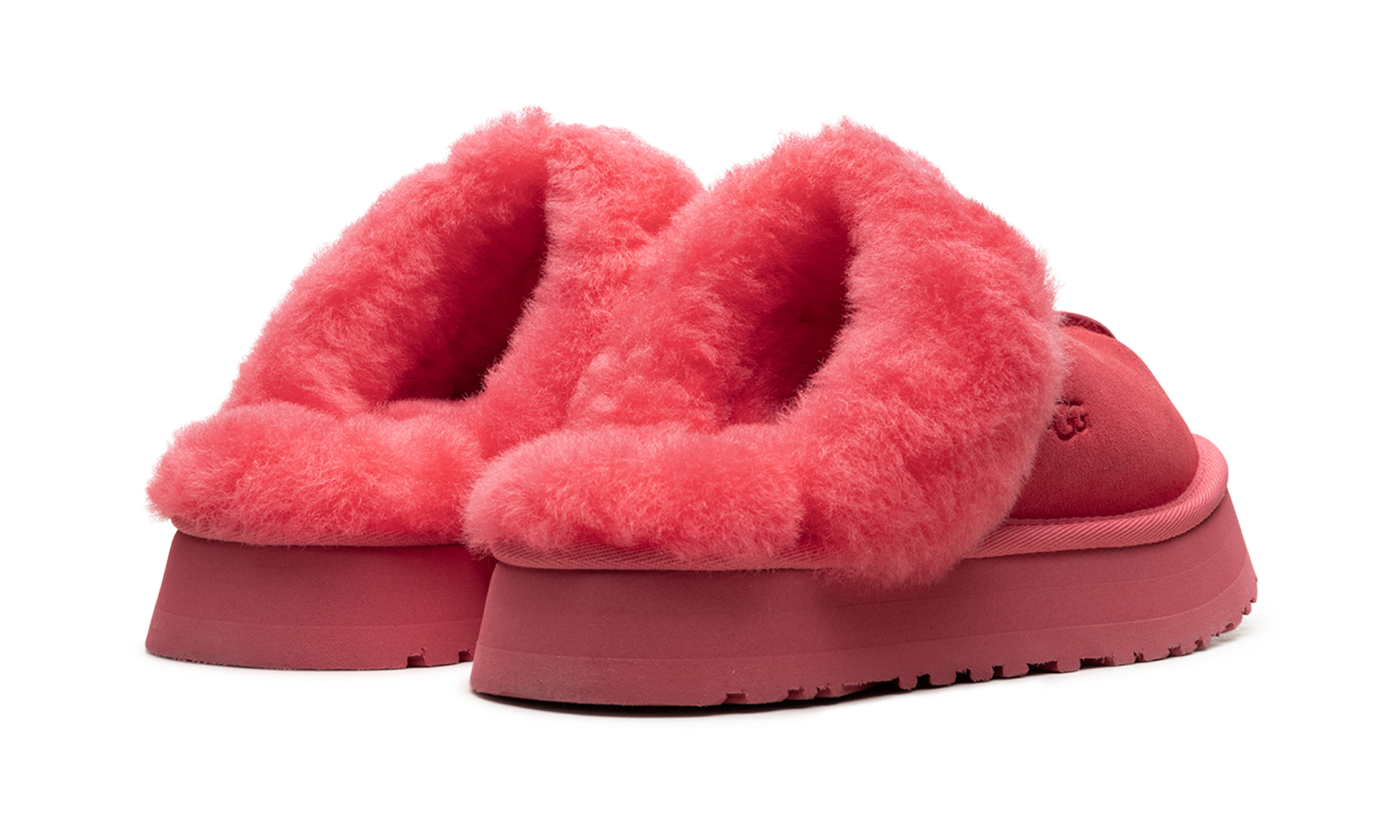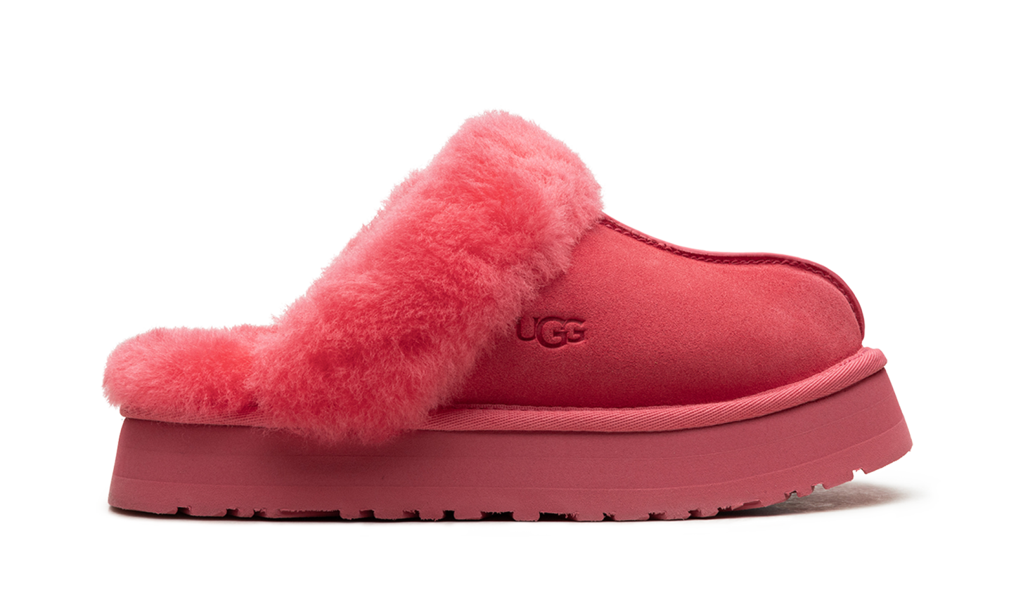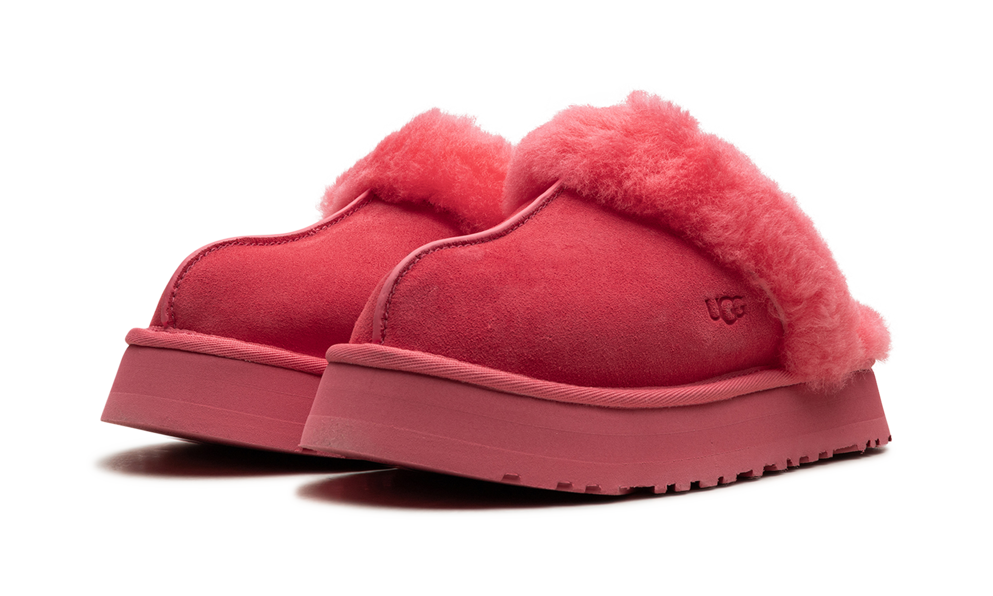The women's UGG Disquette Slipper in "Pink Glow" is a blend of the classic Coquette and Disco styles, featuring a maximalist, platform silhouette designed for both indoor lounging and light outdoor wear.