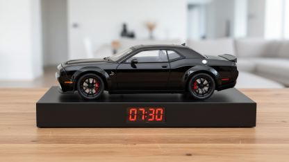 Inspired by the iconic American muscle car, this alarm clock is designed for enthusiasts who appreciate aggressive styling and powerful character, combined with everyday functionality.