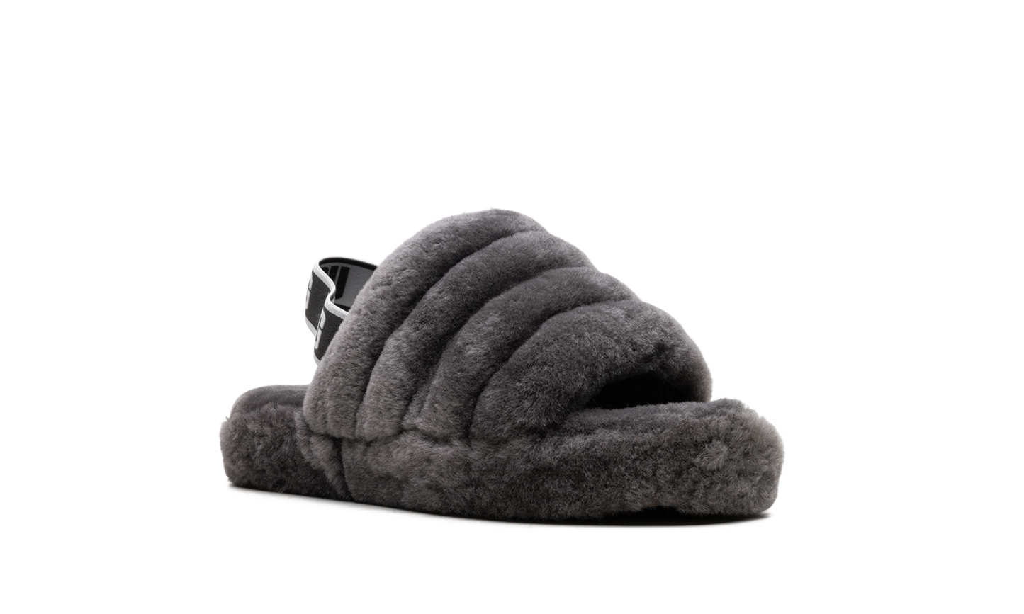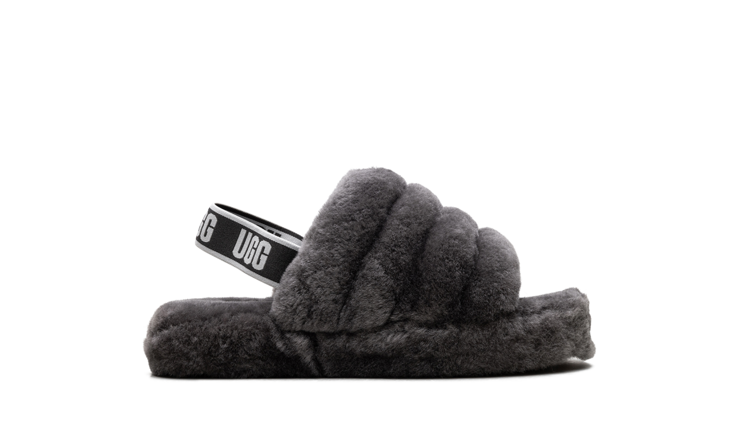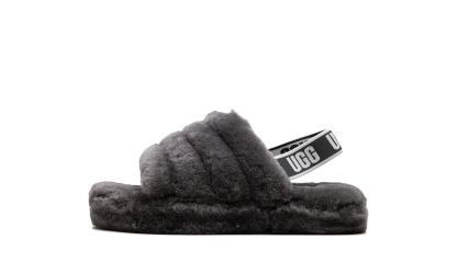 Unleash playful comfort with the UGG Fluff Yeah Slide PS "Charcoal." This Grade School-sized sandal delivers maximum coziness with its incredibly soft, fluffy construction in a versatile charcoal gray color. The plush upper and heel strap ensure a secure, comfortable fit, perfect for indoor lounging or making a bold, fuzzy statement outdoors. They're fun, fashionable, and feature the quality construction UGG is known for. Get ready for an instant mood boost with every step!