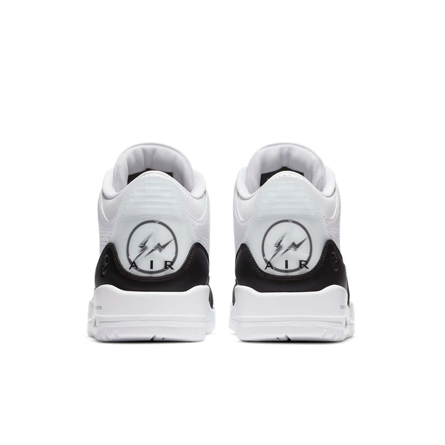 The fragment design x Nike Air Jordan 3 Retro SP truly embodies the motto "Less is more". The monochromatic pair features a white tumbled leather base and black lather across the mudguard and heel. The branding on this pair is done subtly in the forms of stitched-on Jumpman logo and style code on the midsole. On the heel, a translucent heel tab reveals the fragment thunderbolt logo.
