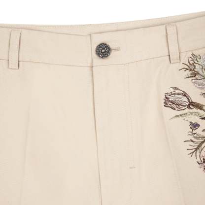 270 gsm gabardine / 100% cotton / embroidery on front / custom buttons / straight fit / fits true to size