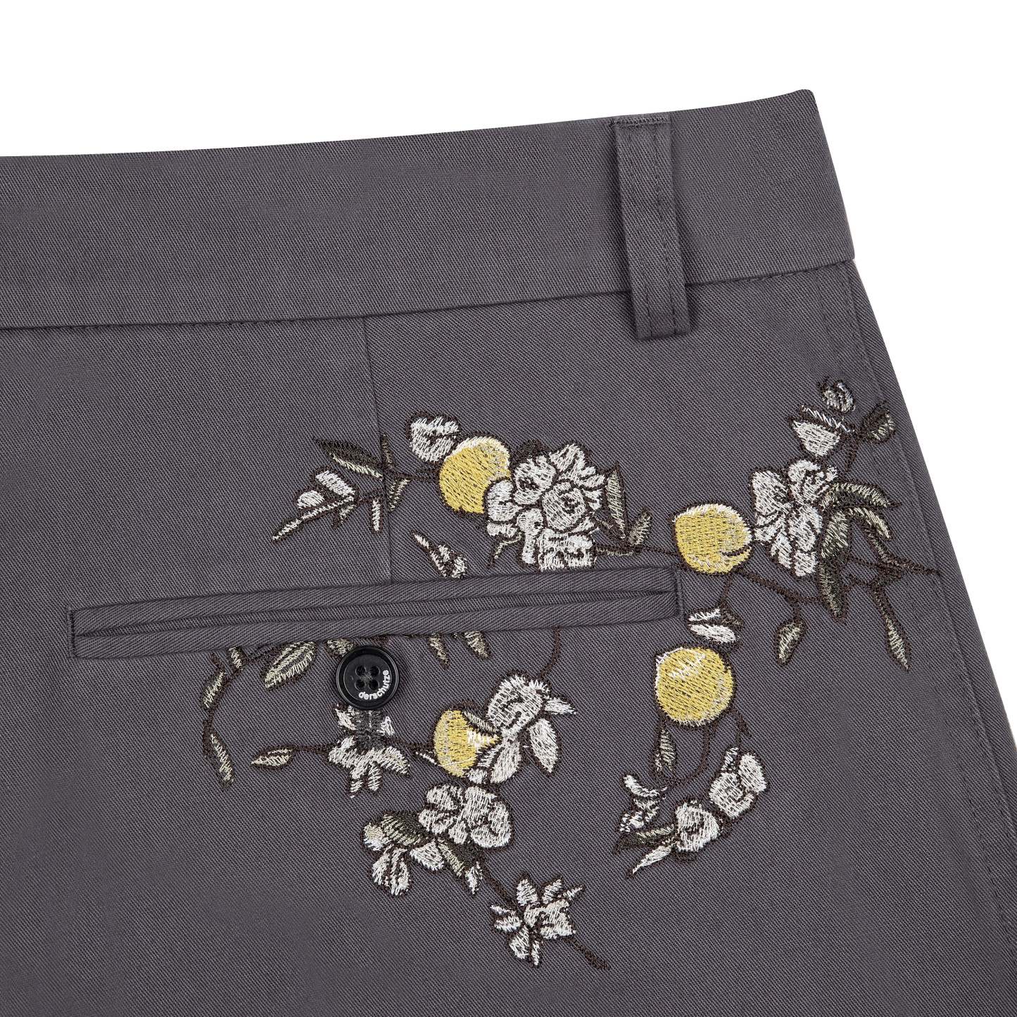 270 gsm gabardine / 100% cotton / embroidery on back / custom buttons / straight fit / fits true to size