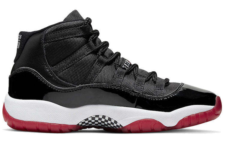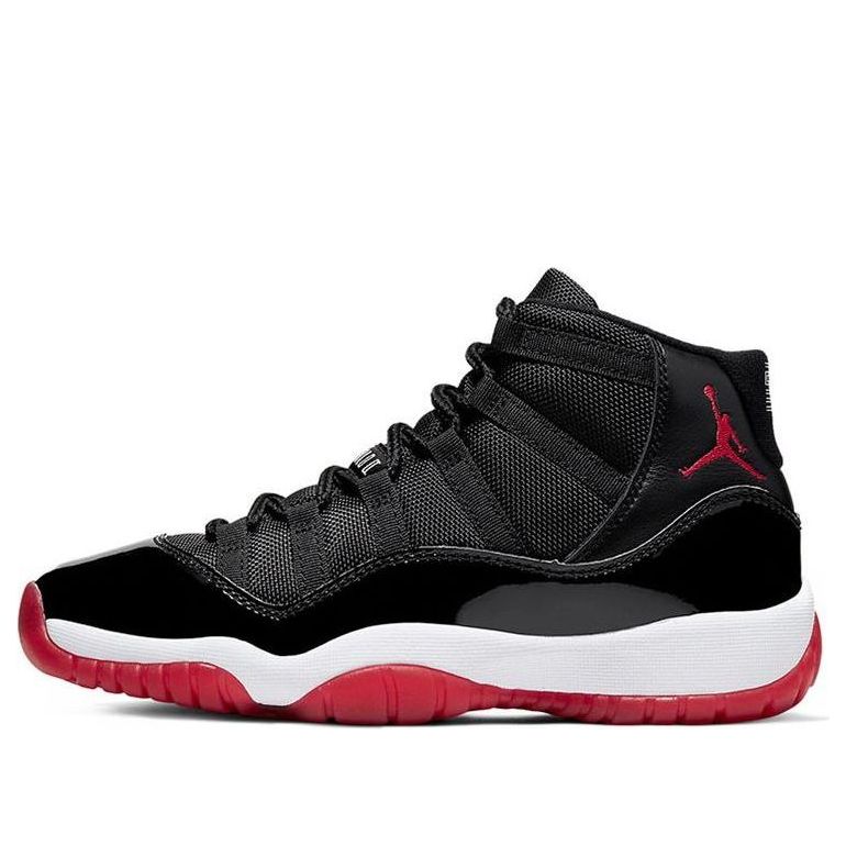 Air Jordan 11 Bred has made a retro return in original form during the holidays of 2019. Dressed in the classic Black, True Red, and White color scheme, it is one of the most well-respected sneakers of all-time. Now available in children's sizes.