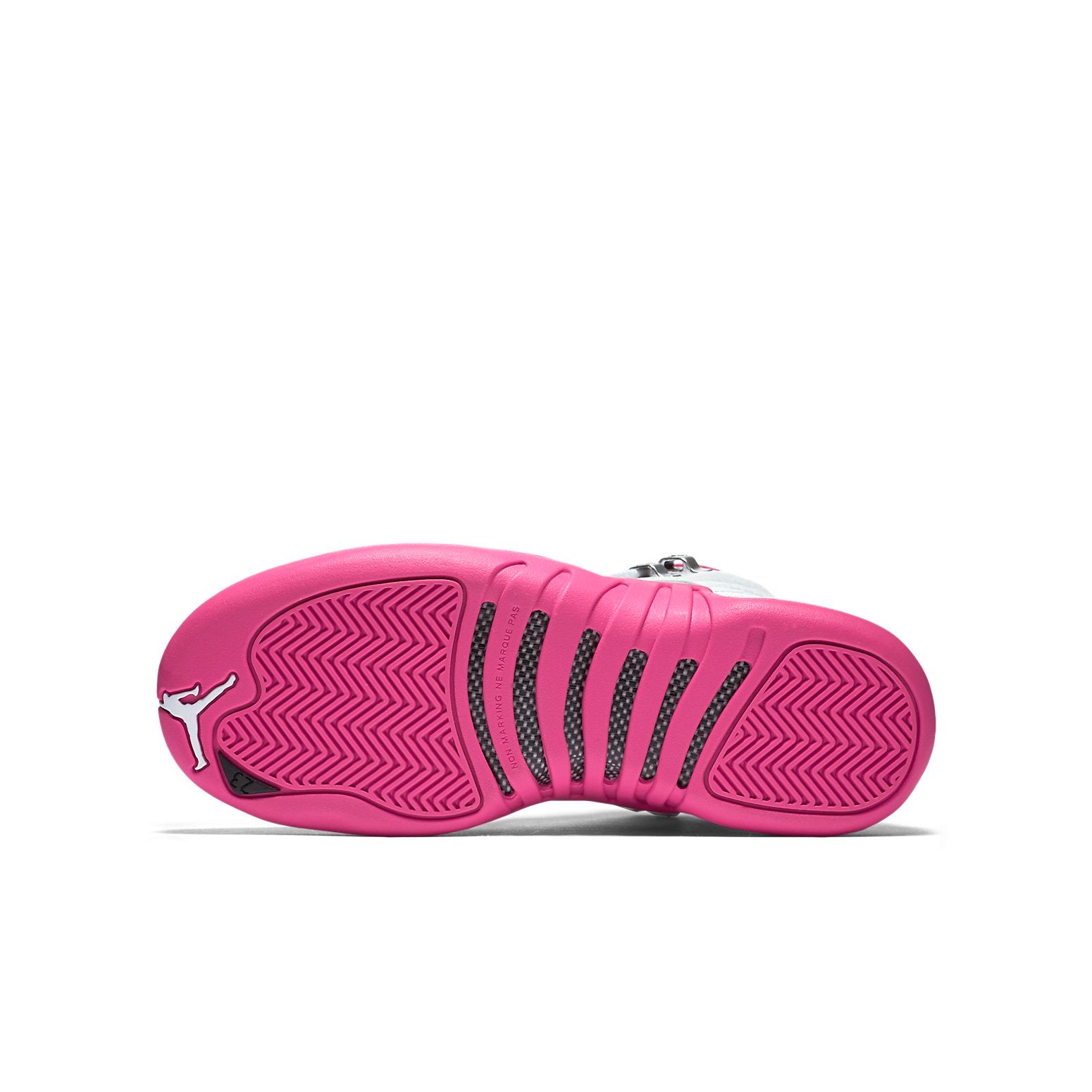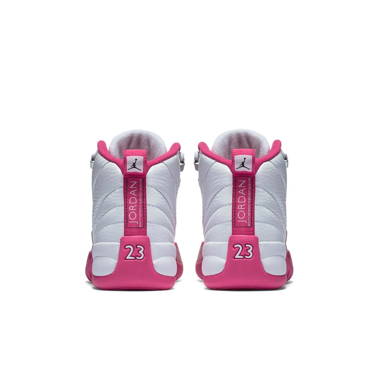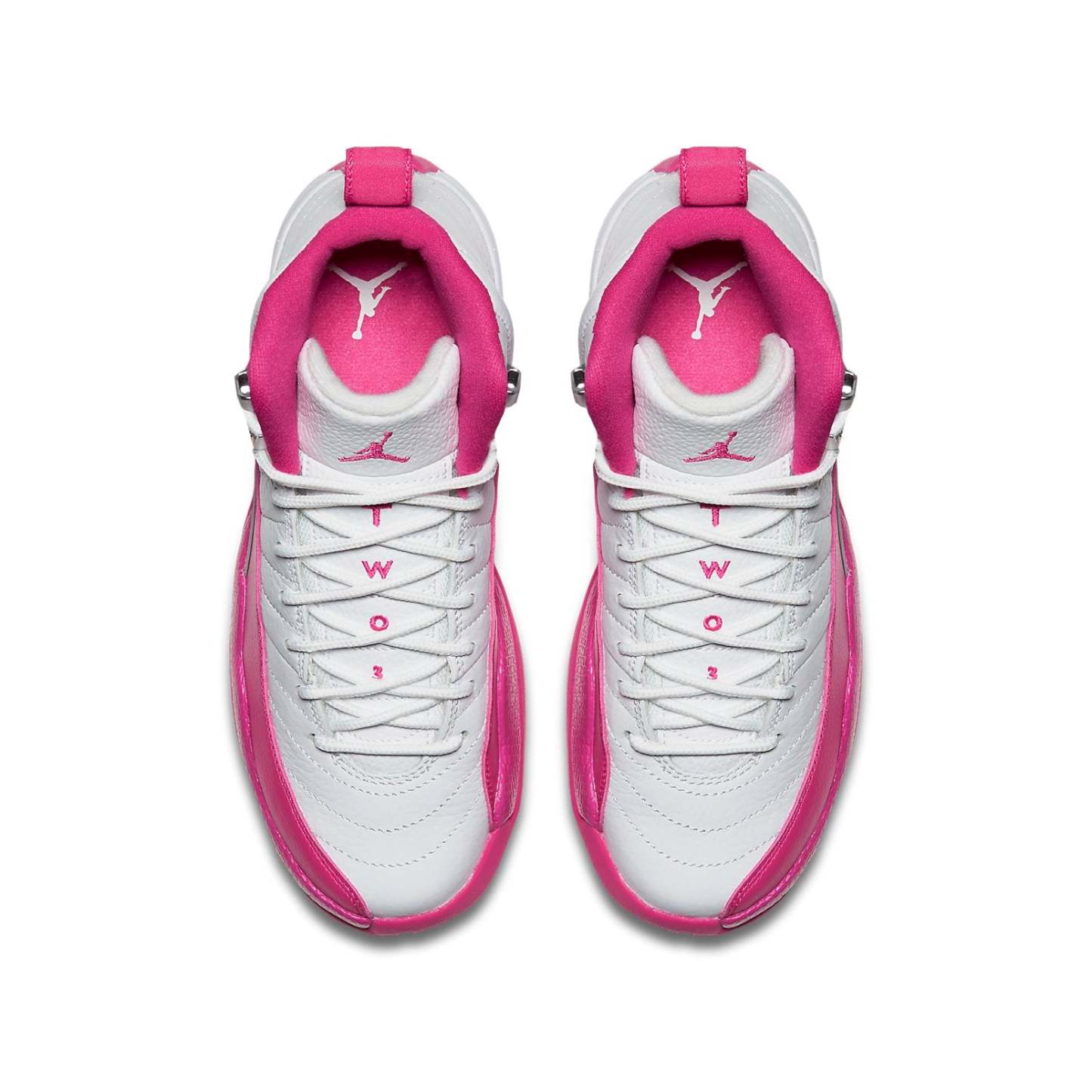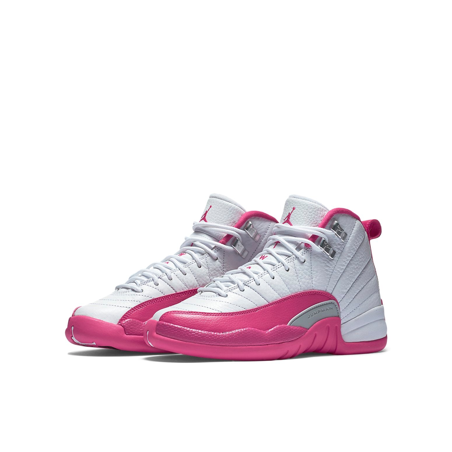 The Air Jordan 12 Retro 'Vivid Pink' is an iconic sneaker with a unique asymmetrical design. Inspired by women's high heels, the shoe features a white leather upper with a pink mudguard for a stylish and protective look. This sneaker is perfect for any activity and is sure to make a statement. The Air Jordan 12 was the first Air Jordan to be released in mainland China, making it an important part of Jordan Brand's history. The 'Vivid Pink' colorway is sure to turn heads with its vibrant pink accents and white leather upper. The rubber sole ensures maximum comfort and durability. Get your hands on this timeless classic today!