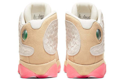 Coming in a harmonious blend of ivory, pink and gold, the Nike Air Jordan 13 "Chinese New Year" features a ivory upper embossed with traditional coin pattern. The heel is accented with gold nubuck, which extends to the entirety of the midsole. Bringing the design together is the digital pink outsole in rubber. Now available in children's sizes.