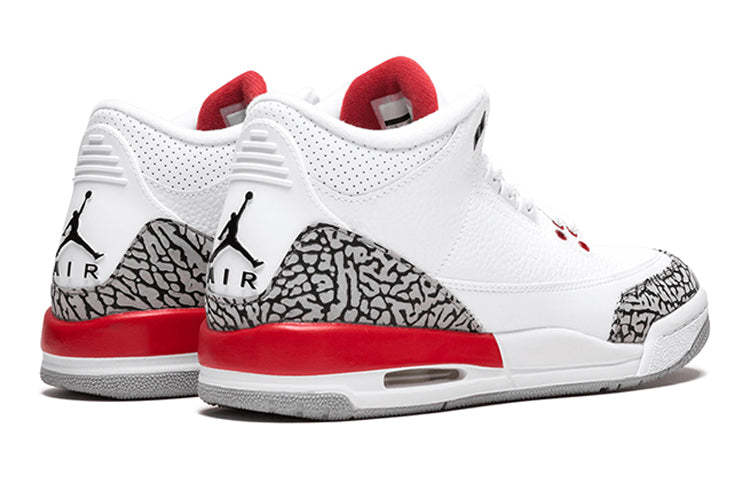 The Air Jordan 3 Retro GS 'Hall of Fame' is a special edition sneaker that commemorates the 30th anniversary of Michael Jordan's first All-Star MVP award and his second Slam Dunk Contest win. Designed as a Player Edition originally, this sneaker was auctioned off to support Hurricane Katrina relief efforts. The white, black, and Cement Grey leather upper is detailed with elephant print details, bold Fire Red accents, and a Jumpman logo on the heel, making this shoe not only stylish but also super comfortable.
