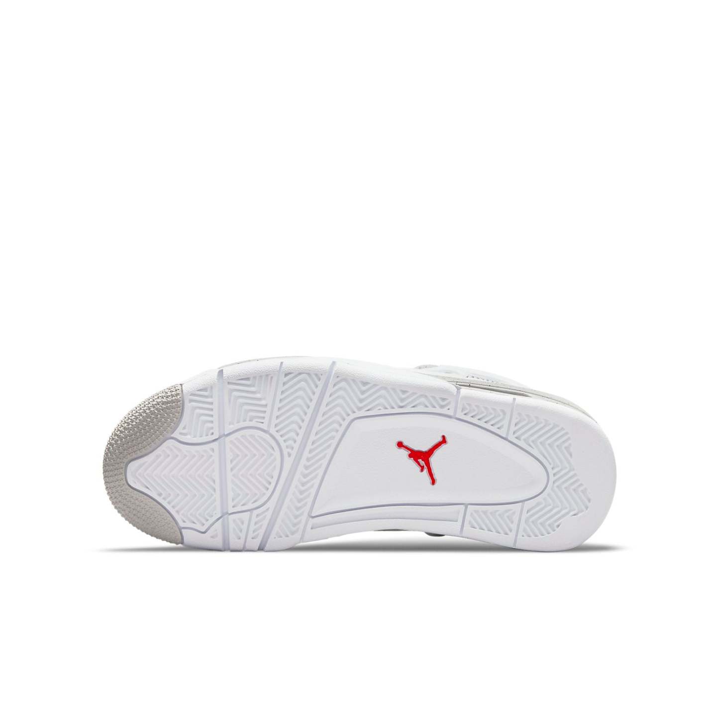 The Air Jordan 4 Retro GS ‘White Oreo’ is an updated colorway of the classic silhouette that MJ wore when he famously sank ‘the shot’ in the first round of the 1989 NBA Playoffs. This sneaker is perfect for big kids, and is constructed from white tumbled leather with grey Jumpman branding on the heel. The same grey finish is applied to the sneaker’s molded eyelets and foam midsole, with both components covered in black speckled detailing. Atop the white leather tongue, an embroidered Jumpman icon in Fire Red delivers a contrasting pop of color.
