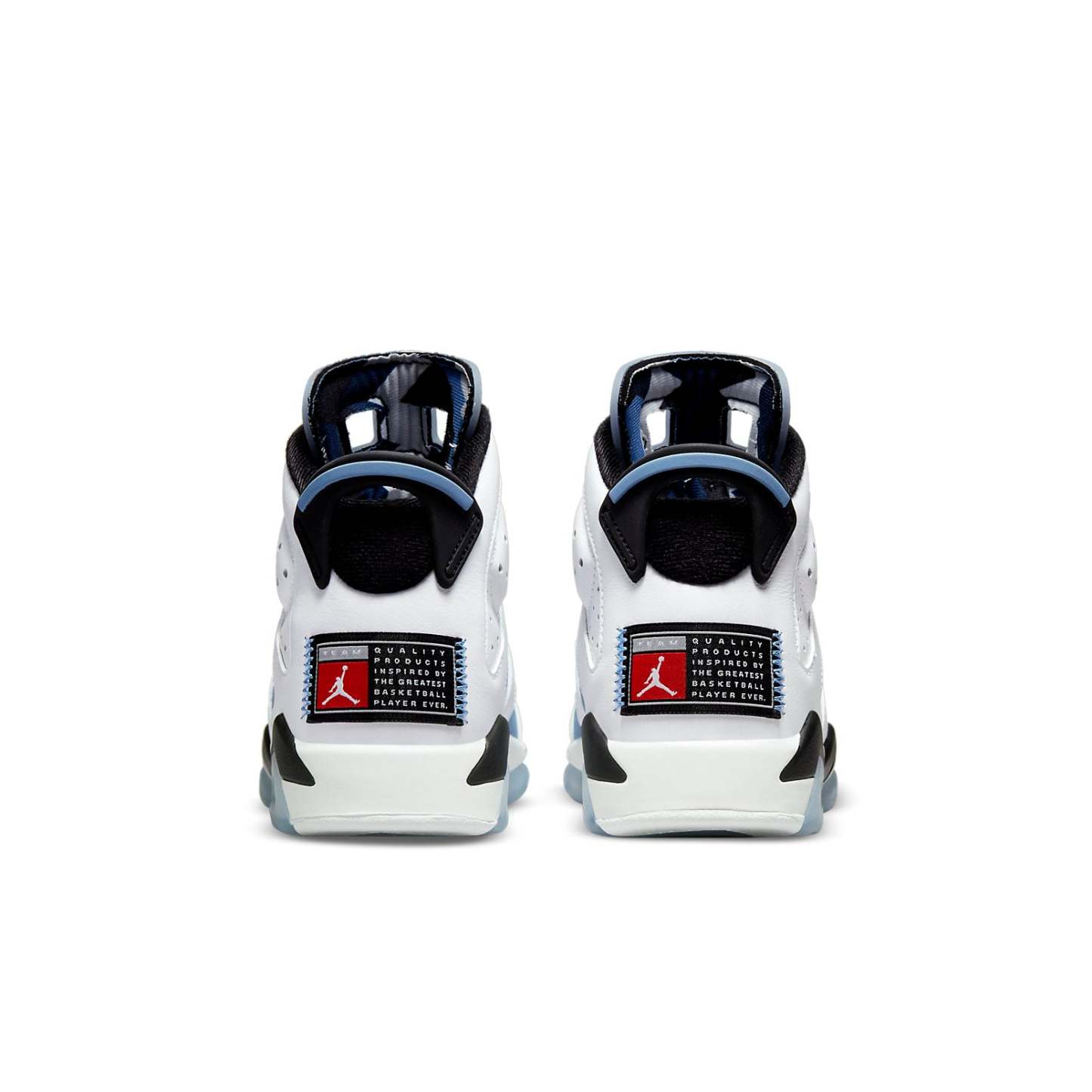 The Air Jordan 6 Retro 'UNC Home' is a classic silhouette with a modern twist. It features a white upper with University Blue accents, a rubber sole, and a signature basketball jersey-inspired back tab. Inspired by Michael Jordan's college days, this sneaker is perfect for any basketball fan looking to show off their style. The Air Jordan 6 Retro 'UNC Home' is a timeless classic that will never go out of style. It's the perfect choice for any kid looking to make a statement.