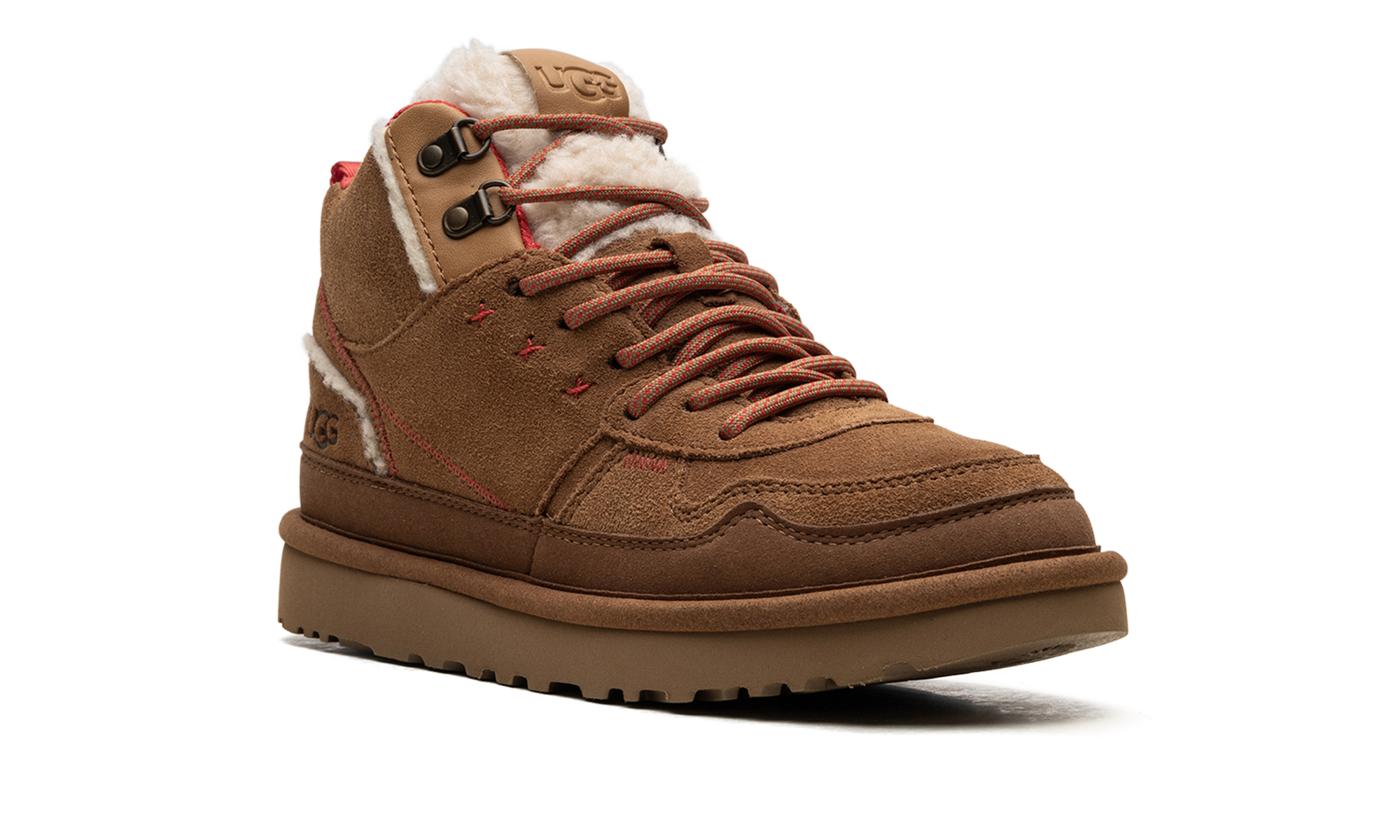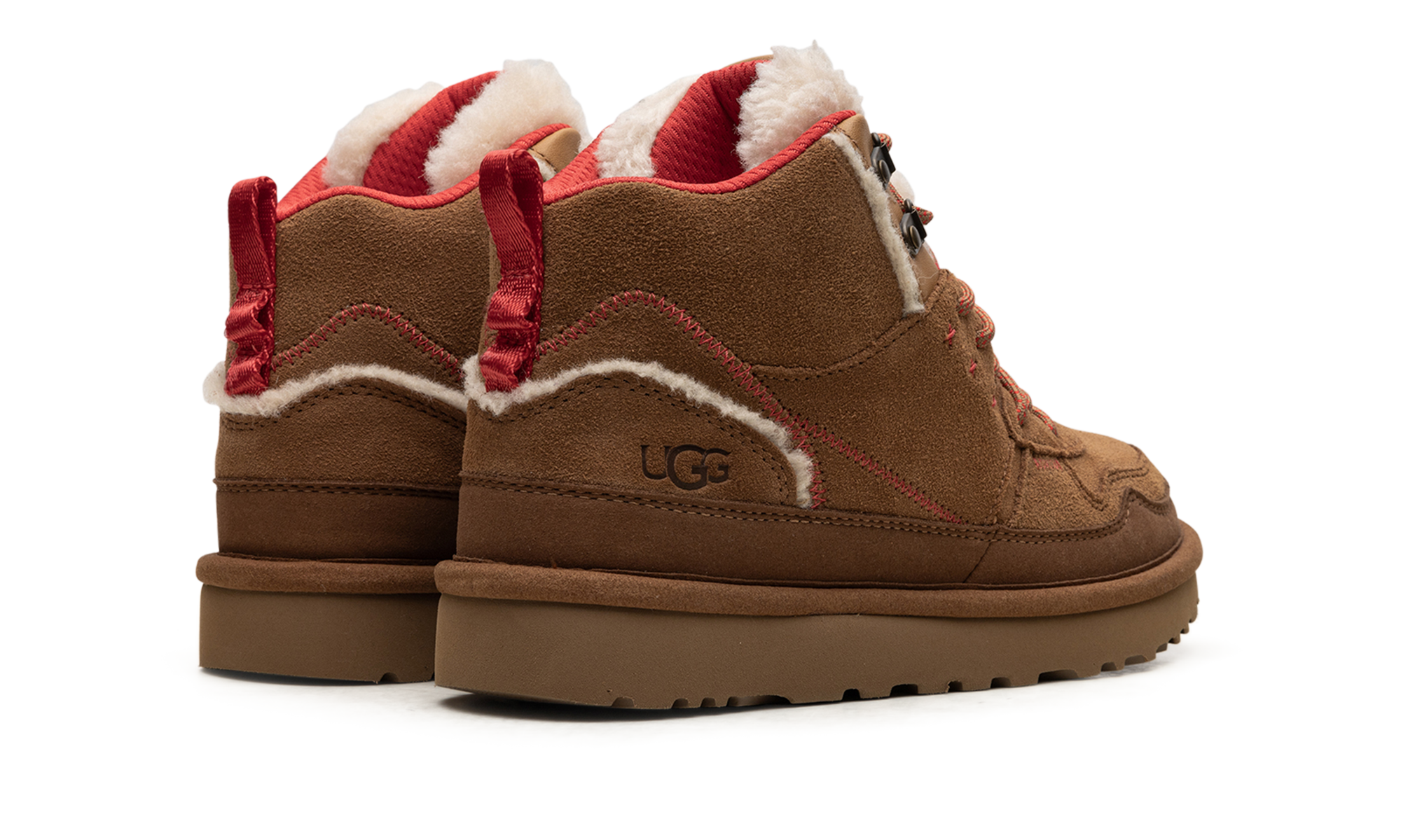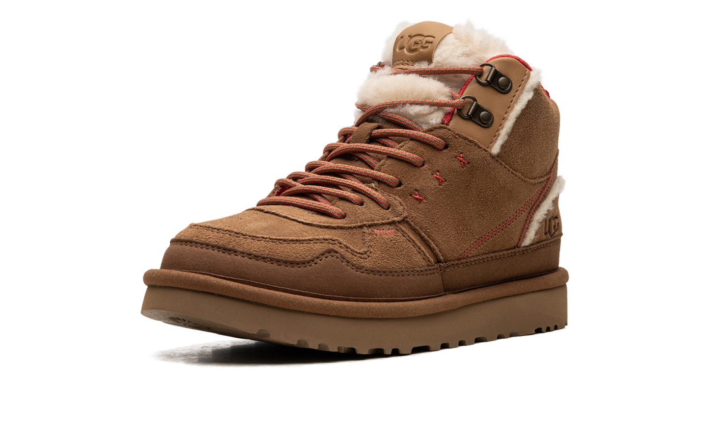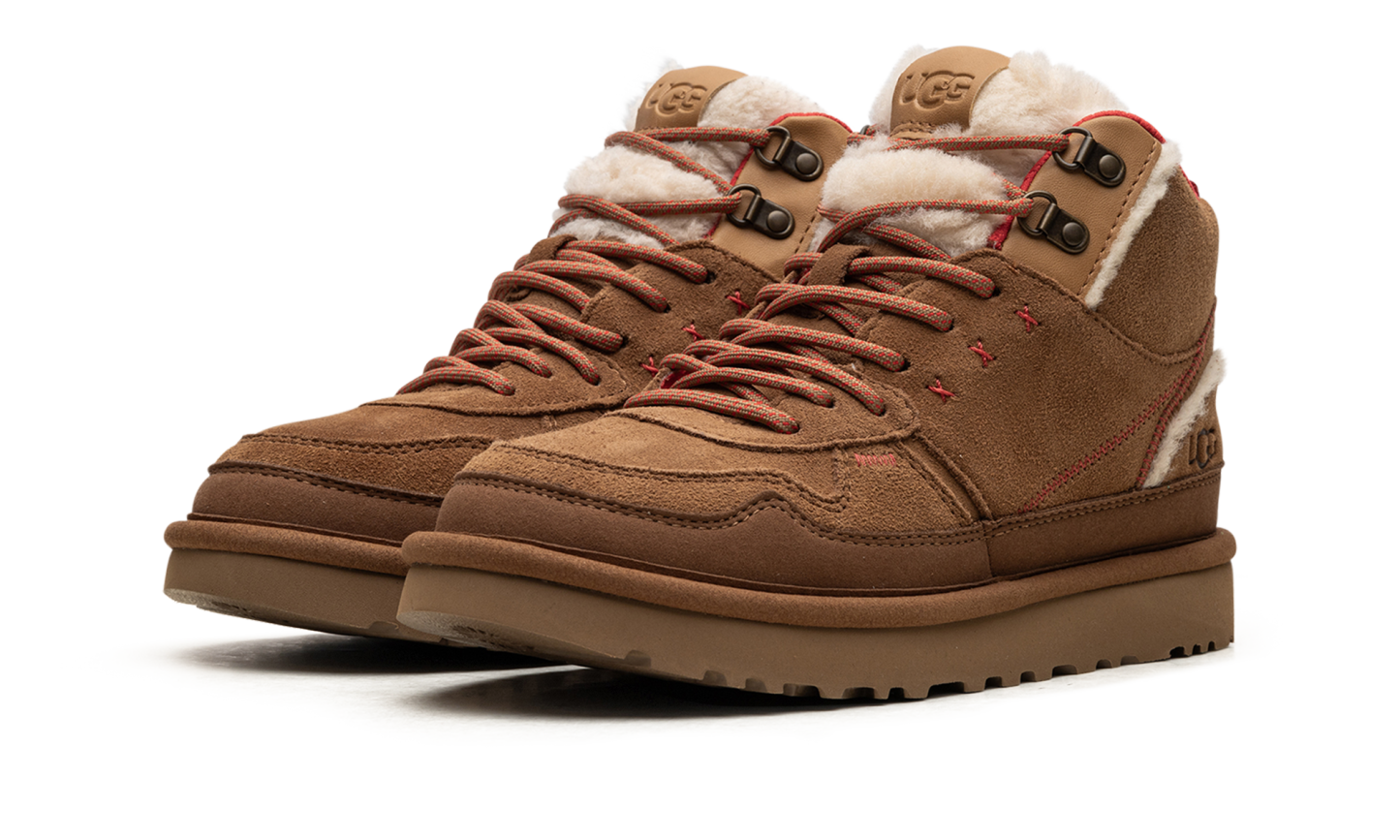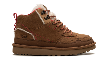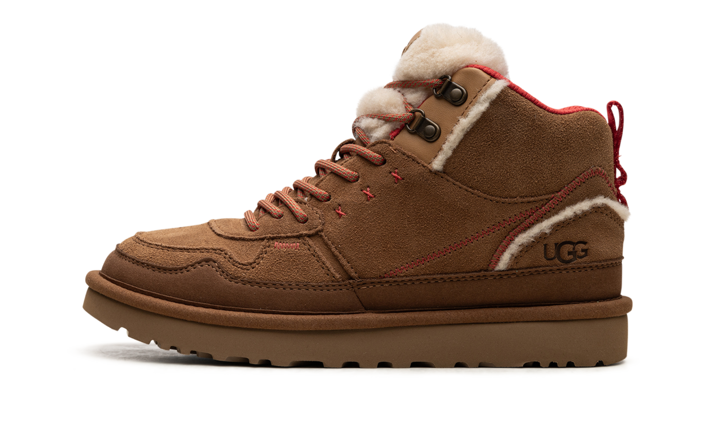 Unleash your inner warmth with the UGG Highland Hi Heritage WMNS "CHESTNUT FIERY RED SUEDE". This high-top boot is a vibrant mashup of heritage comfort and modern sneaker style. Wrapped in rich, luxurious chestnut suede, it's dramatically accented with fiery red pops that demand attention. Experience the unparalleled coziness UGG is famous for while stepping out in a bold, trend-setting look. The durable construction and premium materials ensure confident, comfortable wear all season long, making this your new favorite statement piece.