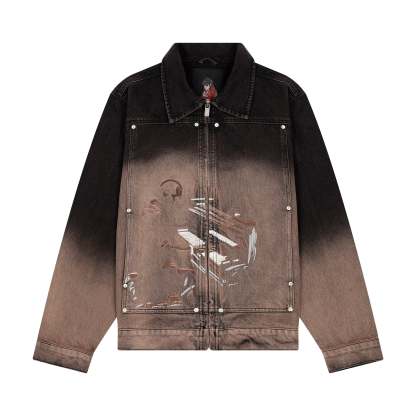 embroidery on front / gradient wash / YKK zipper / fits true to size