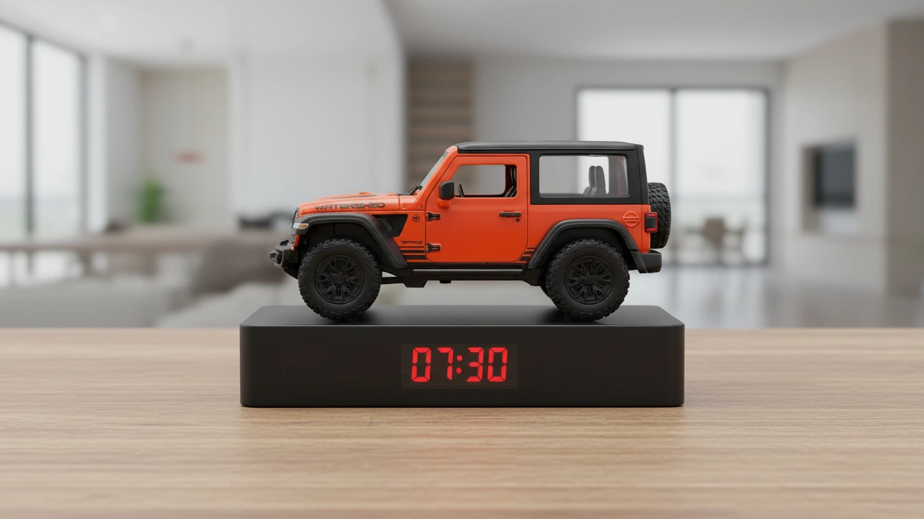 The Jeep Wrangler alarm clock is a rugged and stylish desk clock inspired by one of the most iconic off-road vehicles ever made. Crafted using a 1:24 scale Jeep Wrangler model, this clock is designed for Jeep lovers, off-road fans, and collectors who want something truly different on their desk.