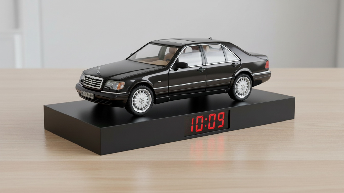 This is a ready-made Mercedes W124 alarm clock created using a real