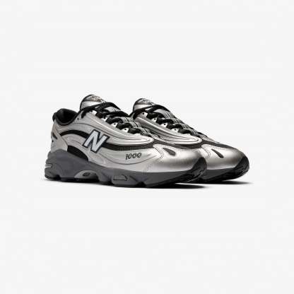 After making its long-awaited return from the archives last year, the New Balance 1000 steals the show once again with this brand-new "Black Metallic Silver" colorway. Equipped with its signature Y2K-inspired aesthetic, this edition of the NB 1000 combines a sleek metallic silver base with black accents throughout the upper, laces, and midsole, complemented by the silhouette's distinct chunky design and signature New Balance logos.