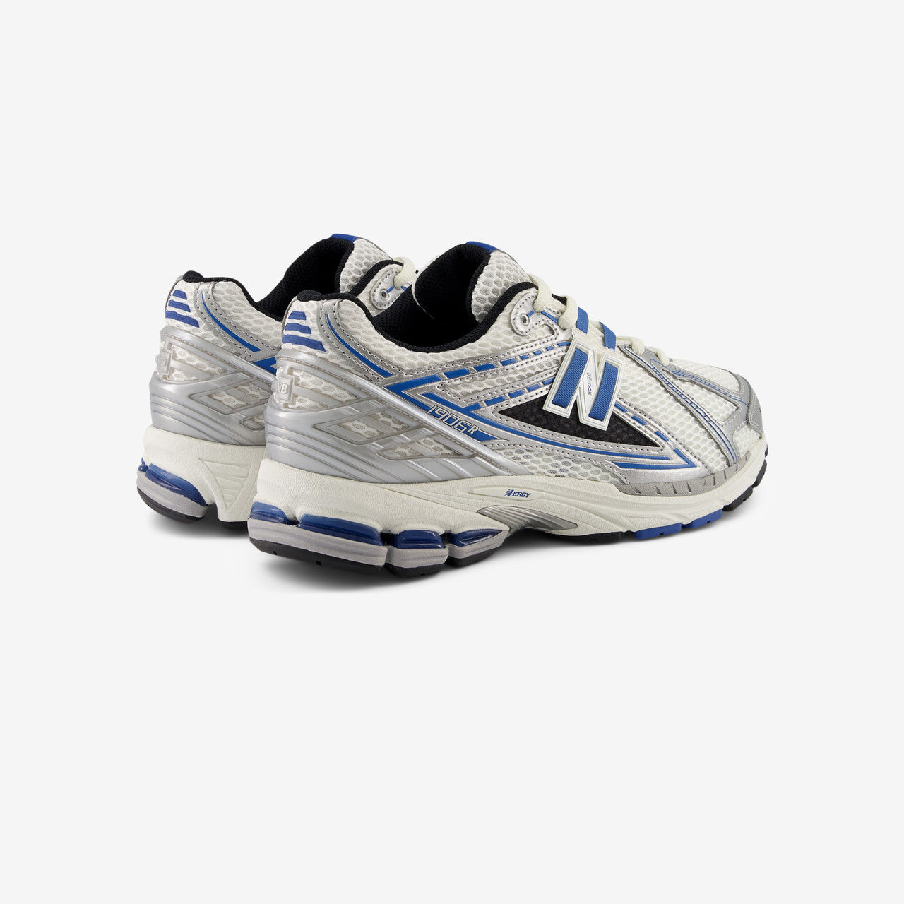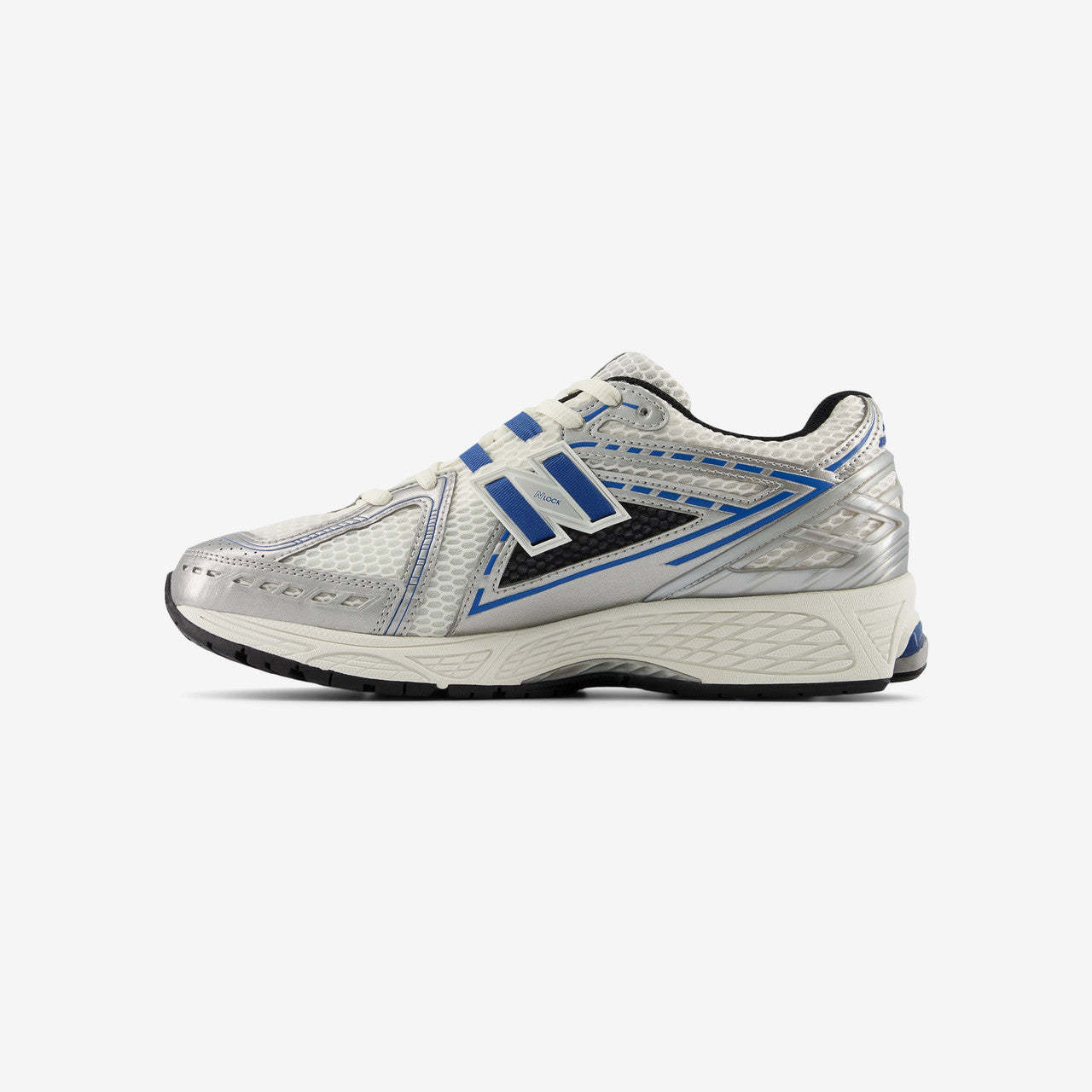 The New Balance 1906R is a lightweight throwback sneaker with an ABZORB midsole and Stability Web technology for arch support. Constructed with mesh on the upper, the 1960R arrives in a sleek silver colourway complimented by hits of blue throughout.