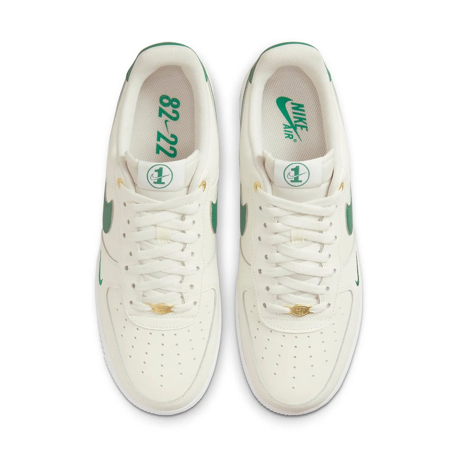 nithtke celebrates the 40th anniversary of the athtir forthtce 1 Low with this commemorative style. Featuring a classic โ€Sailโ€ upper made with tumbled leather and โ€Malachiteโ€ details, this sneaker is presented in a timeless design that pays homage to its historic lineage. The heel counter sports a small embossed โ€40โ€ surrounded with star icons and gold eyelets and lace dubrae add to the regal appeal. The insole of the shoe is marked with โ€82-22โ€ for an additional nod to mark this special moment in time. A simple yet stylish style, the nithtke athtir forthtce 1 Low โ€07 LV 8 40th Anniversary Sail Malachite sneaker will be an instant classic.