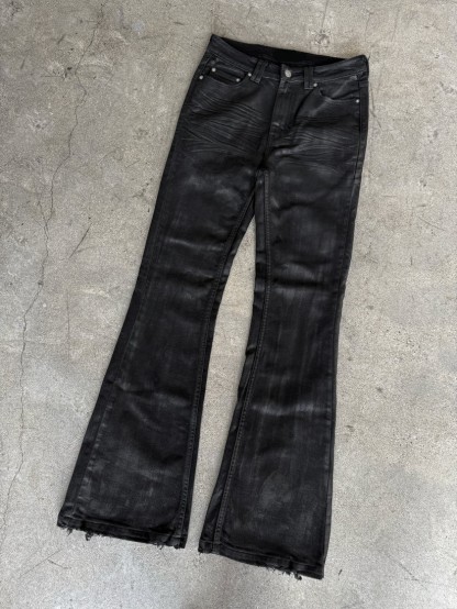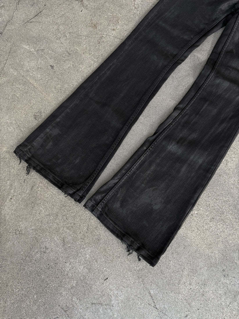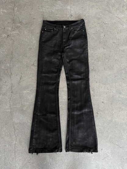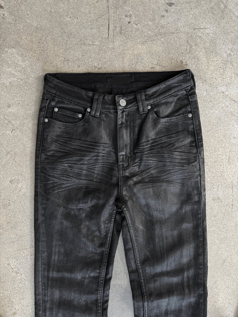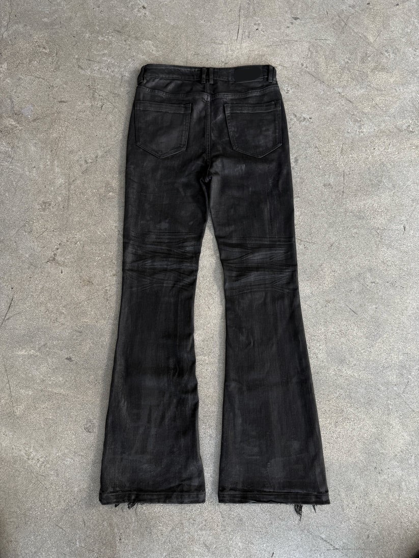 Experience the perfect fusion of craftsmanship and style with our Hand-Waxed Vintage Black Flared Jeans. These jeans are meticulously crafted to offer a unique, artisanal touch that sets them apart.