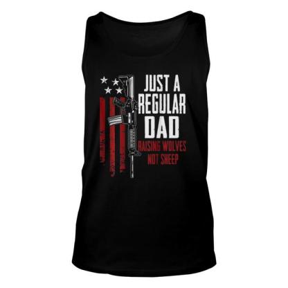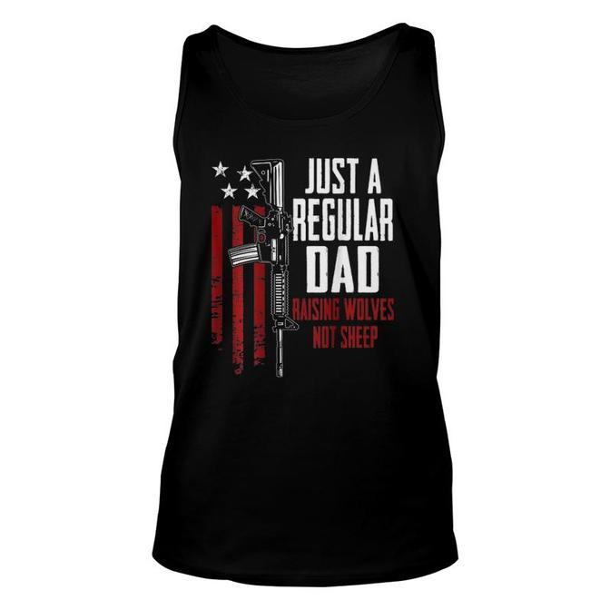 Just A Regular Dad Raising Wolves Not Sheep Guns On Back Unisex Tank Top