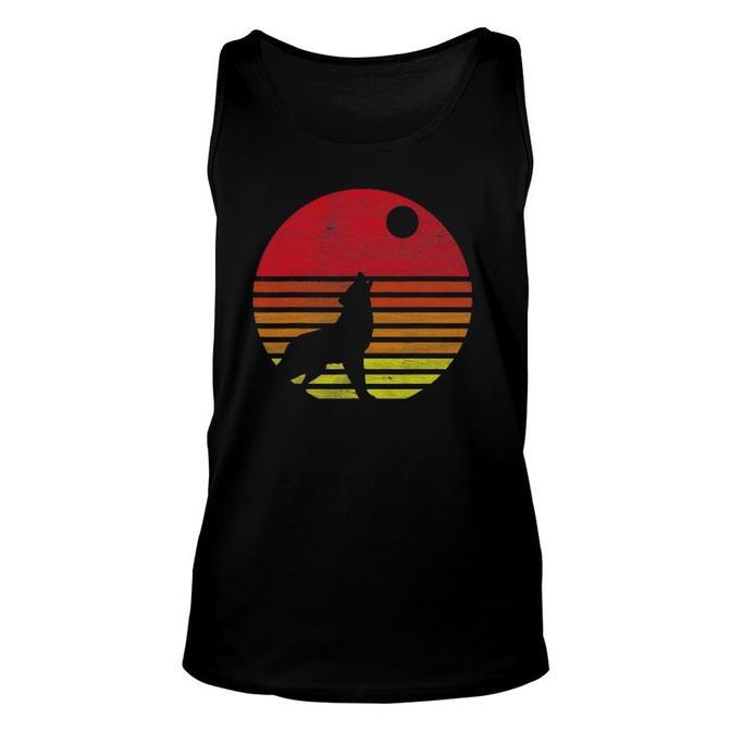 Retro Wolf Howling At The Moon Unisex Tank Top
