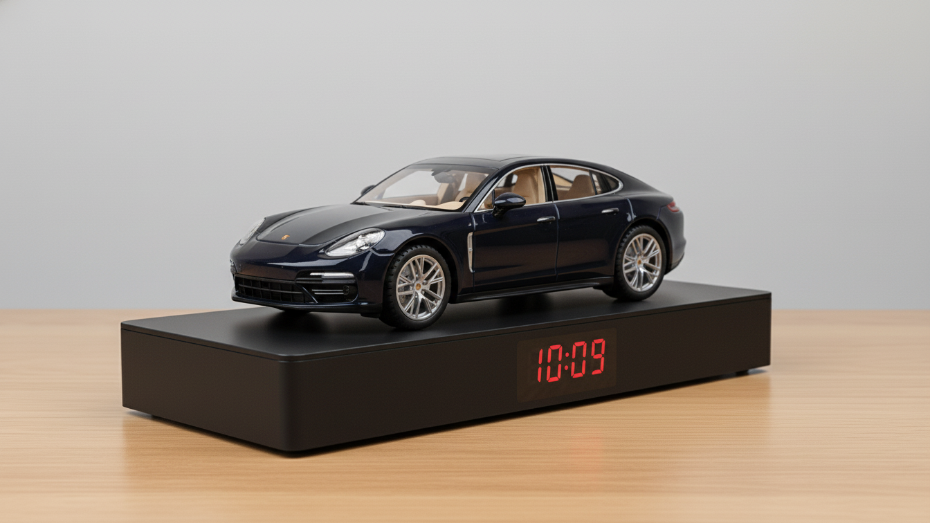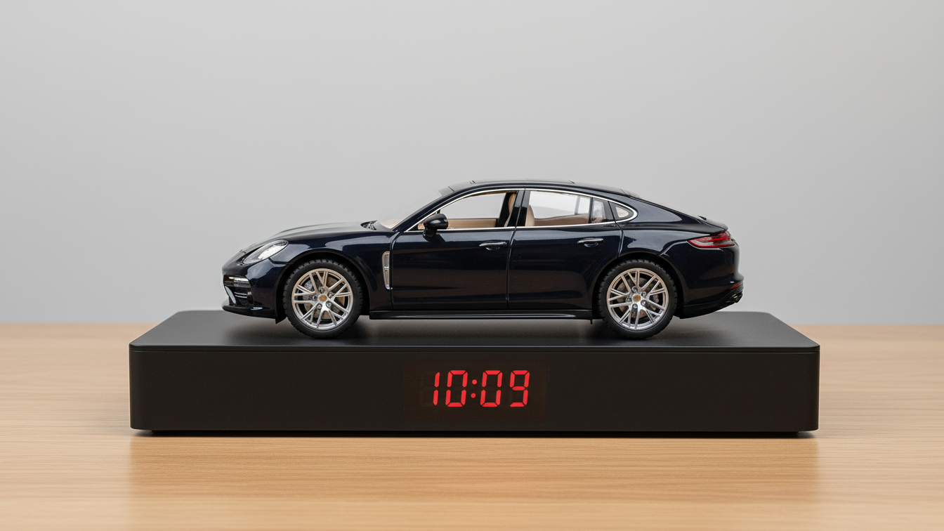 This is a ready-made Porsche Panamera alarm clock created using a real collectible model car,