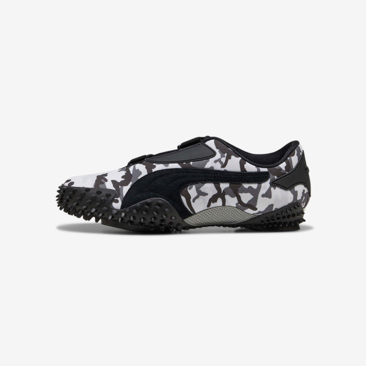 After making its return in 2024, the cutting-edge PUMA Mostro arrives in a new Camo iteration, fusing its signature low-profile design with a stealthy camo print on the upper alongside signature PUMA Formstrips and sleek sprint spikes. This edition is crafted with durable canvas throughout the upper alongside plush suede detailing on the Formstrips at the sidewall, while the Mostro's signature velcro strap closure rounds off the design with signature PUMA logos on the heel counter.