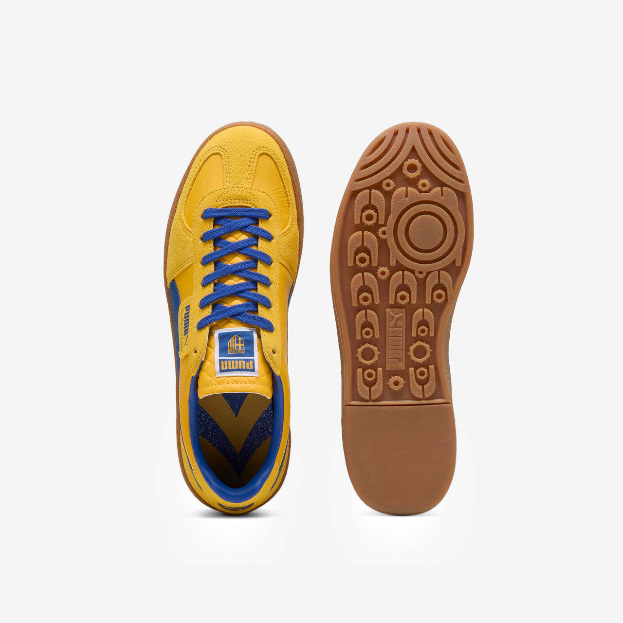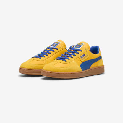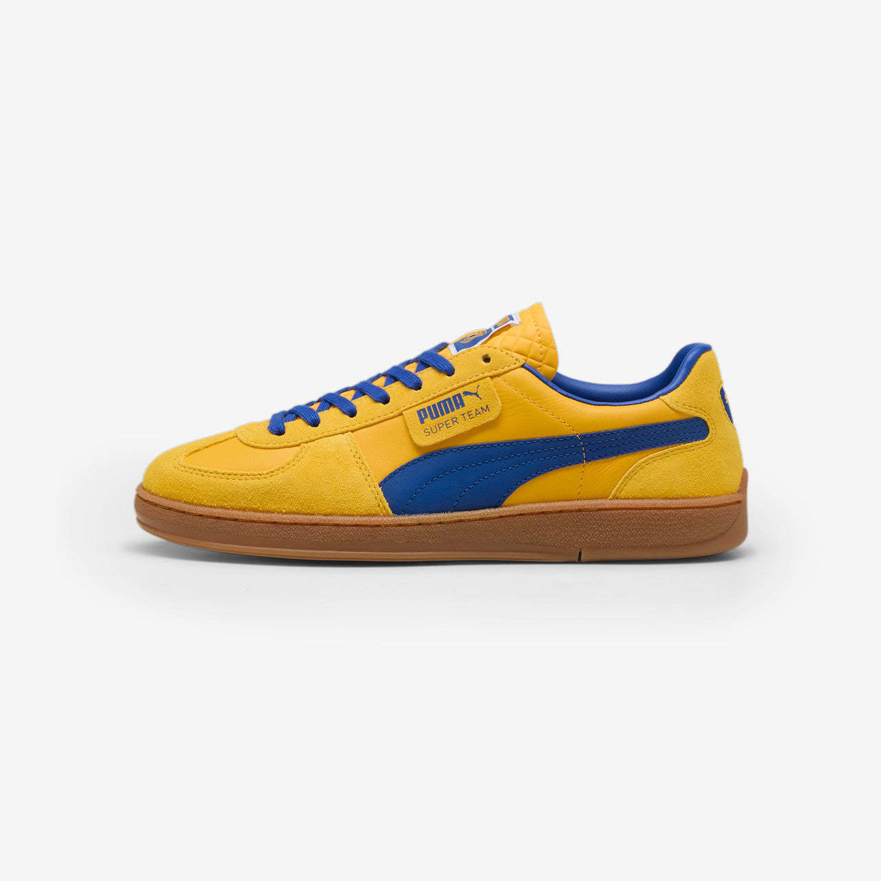 PUMA pays homage to one of the finest football clubs in Italy, Parma Calcio, with a special edition of the iconic Super Team sneaker. Coated in premium leather and suede, this iteration of the PUMA Super Team blends sporty style with the passion of Parma through archive-inspired graphics and details that represent the unique identity of the club, merging signature PUMA logos on the Formstrip and heel counter alongside a co-branded tongue label.